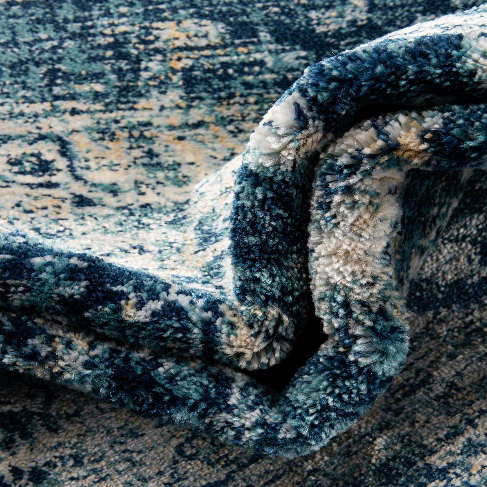 Primary color is Navy Blue. Colors in this rug include: Navy Blue, Beige, Blue, Gray, Tan.