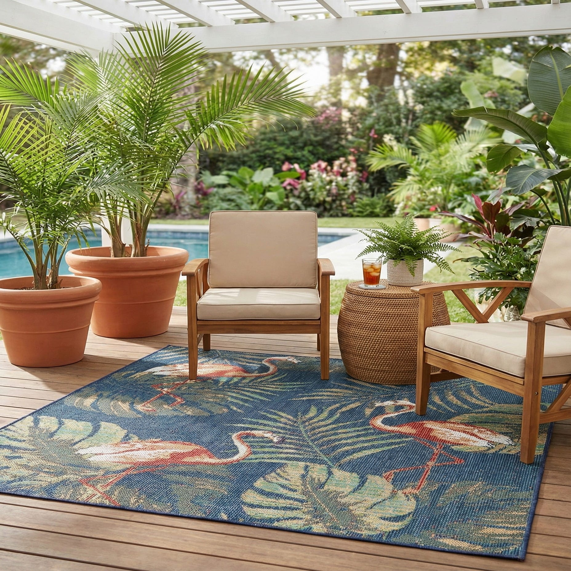 5' 3 x 5' 3 Washable Baja Indoor / Outdoor Square Rug