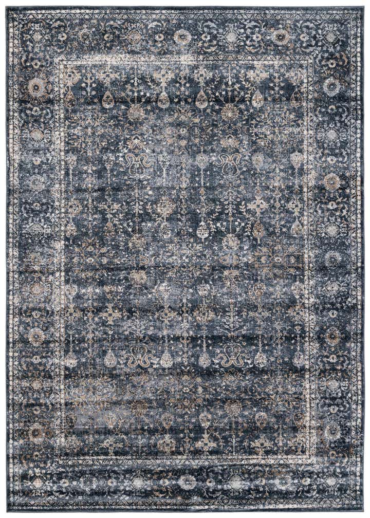 Primary color is Navy Blue. Colors in this rug include: Navy Blue, Beige, Ivory.