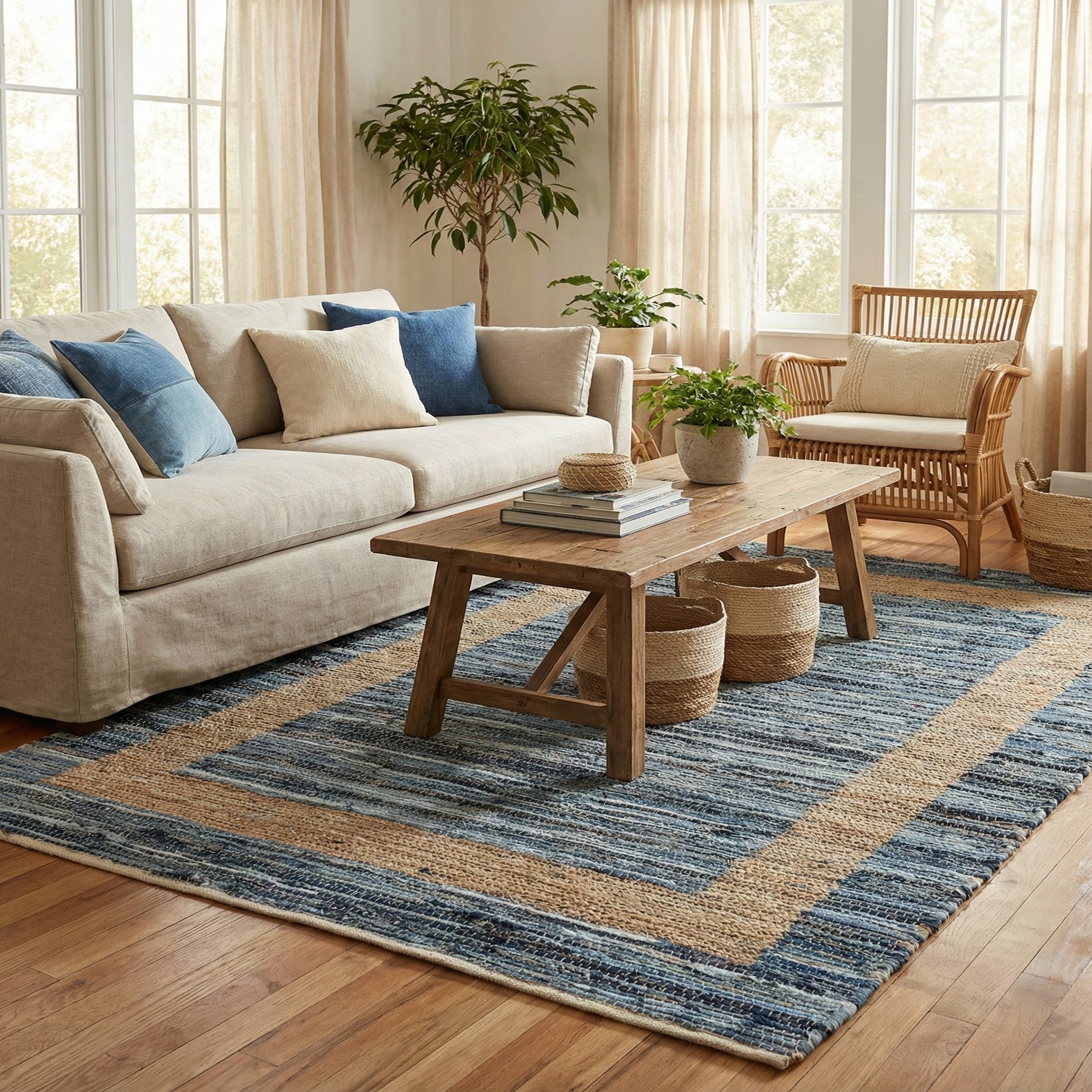 5' 1 x 8' Hand Woven Chindi Jute Rug