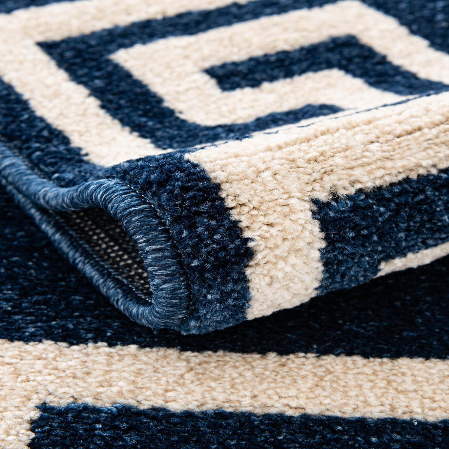 Primary color is Navy Blue. Colors in this rug include: Navy Blue, Beige.