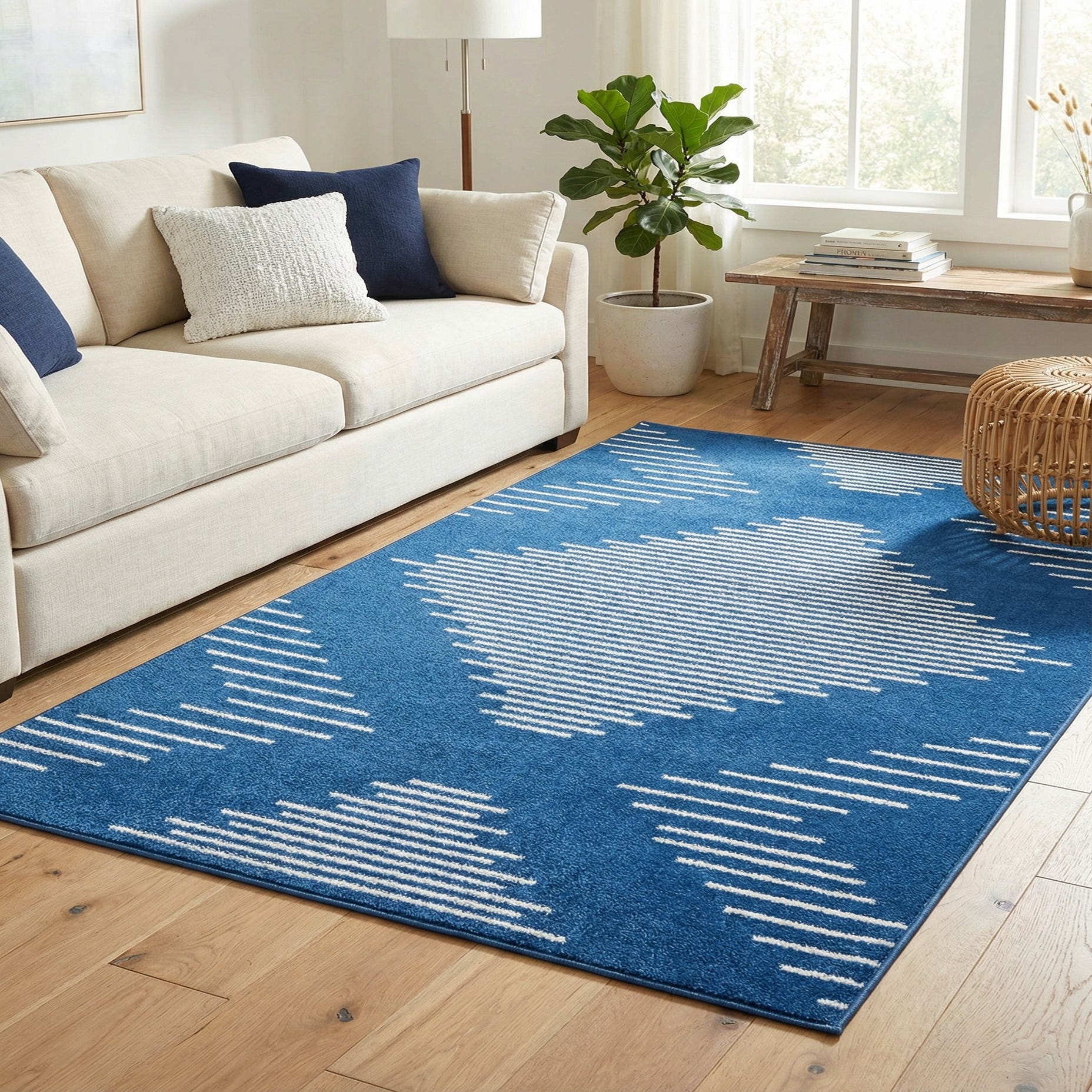 Primary color is Navy Blue. Colors in this rug include: Navy Blue, Ivory.