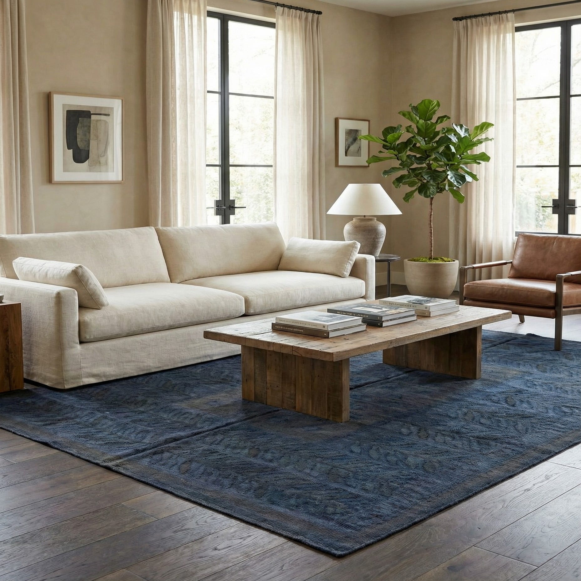 Primary color is Navy Blue. Colors in this rug include: Navy Blue, Black.