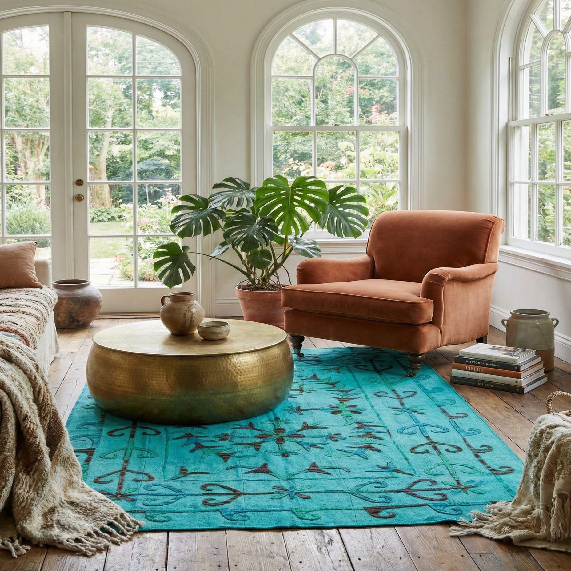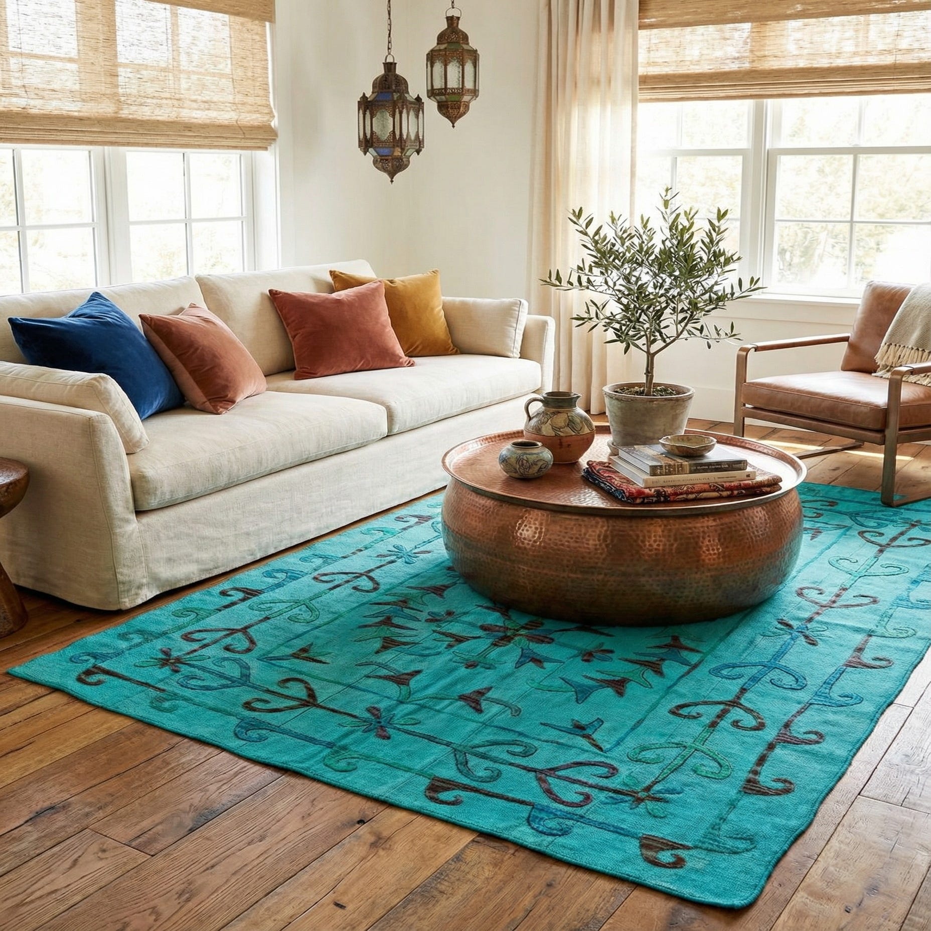 5' 3 x 7' 4 Hand Woven Kilim Suzani Wool Rug