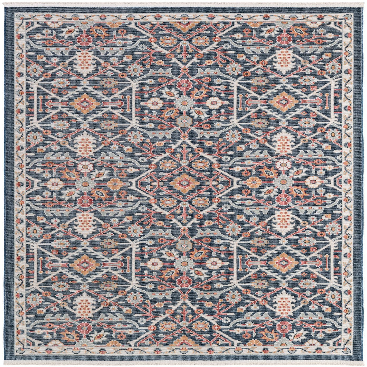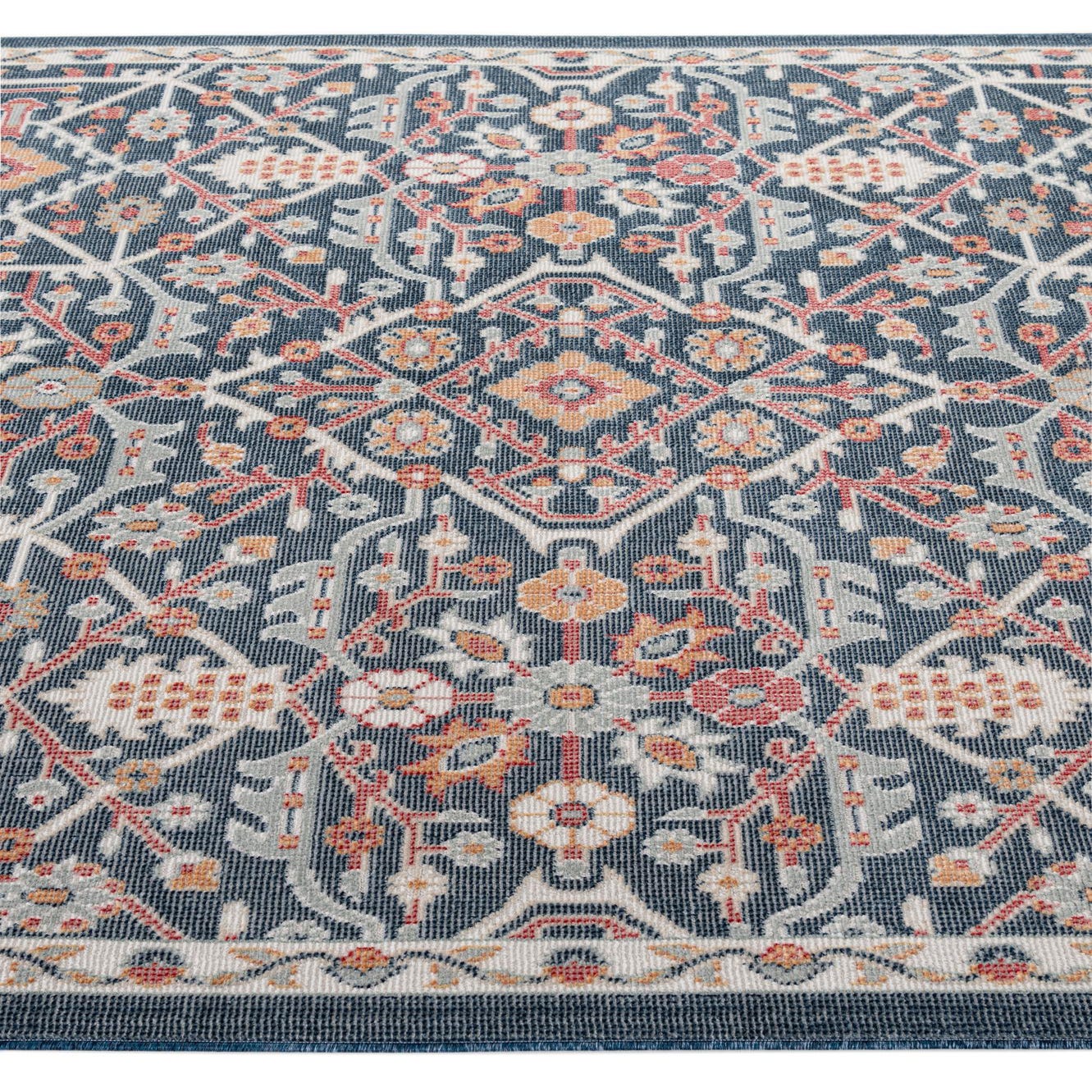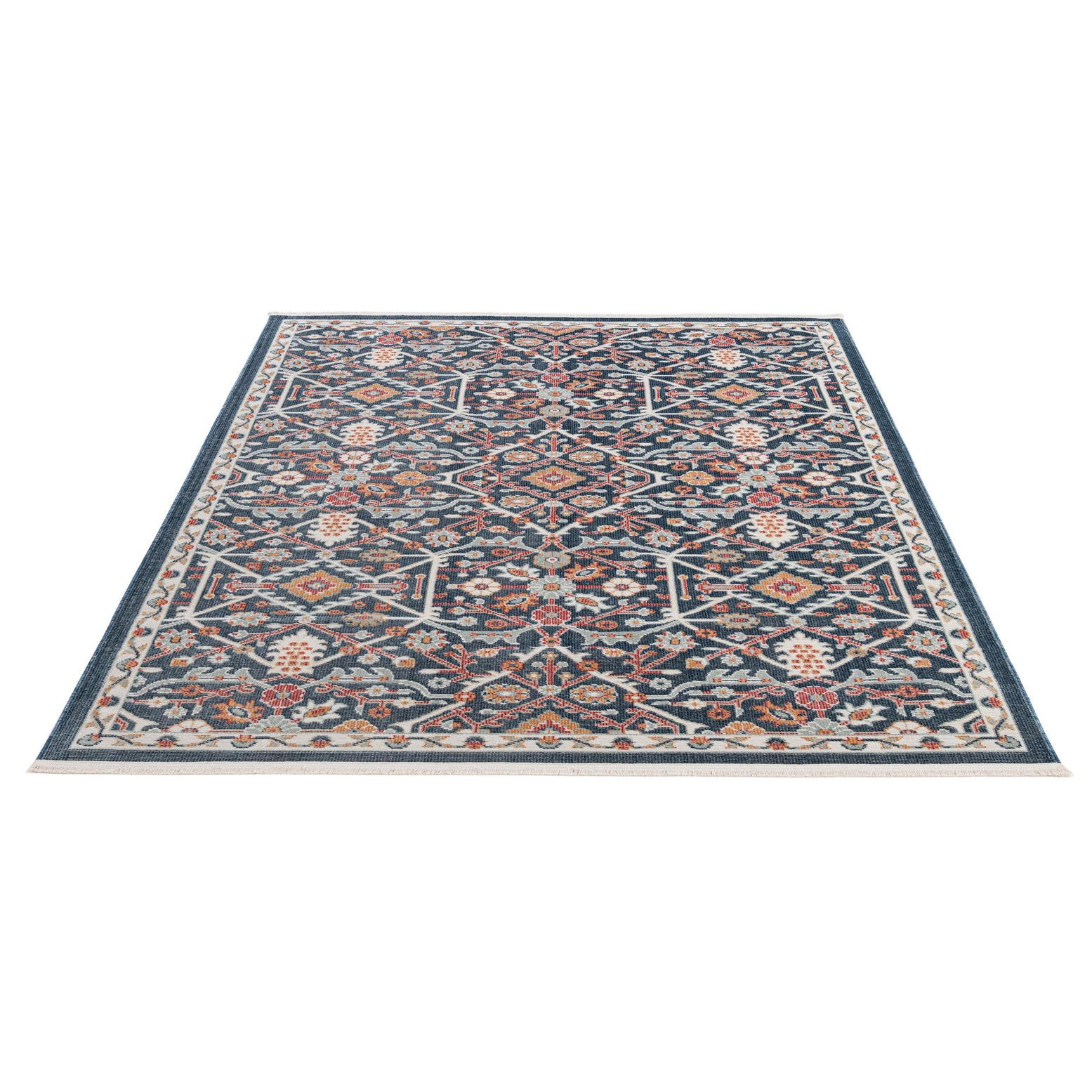Primary color is Navy Blue. Colors in this rug include: Navy Blue, Beige, Black, Blue, Brown, Ivory, Red, Light Blue.