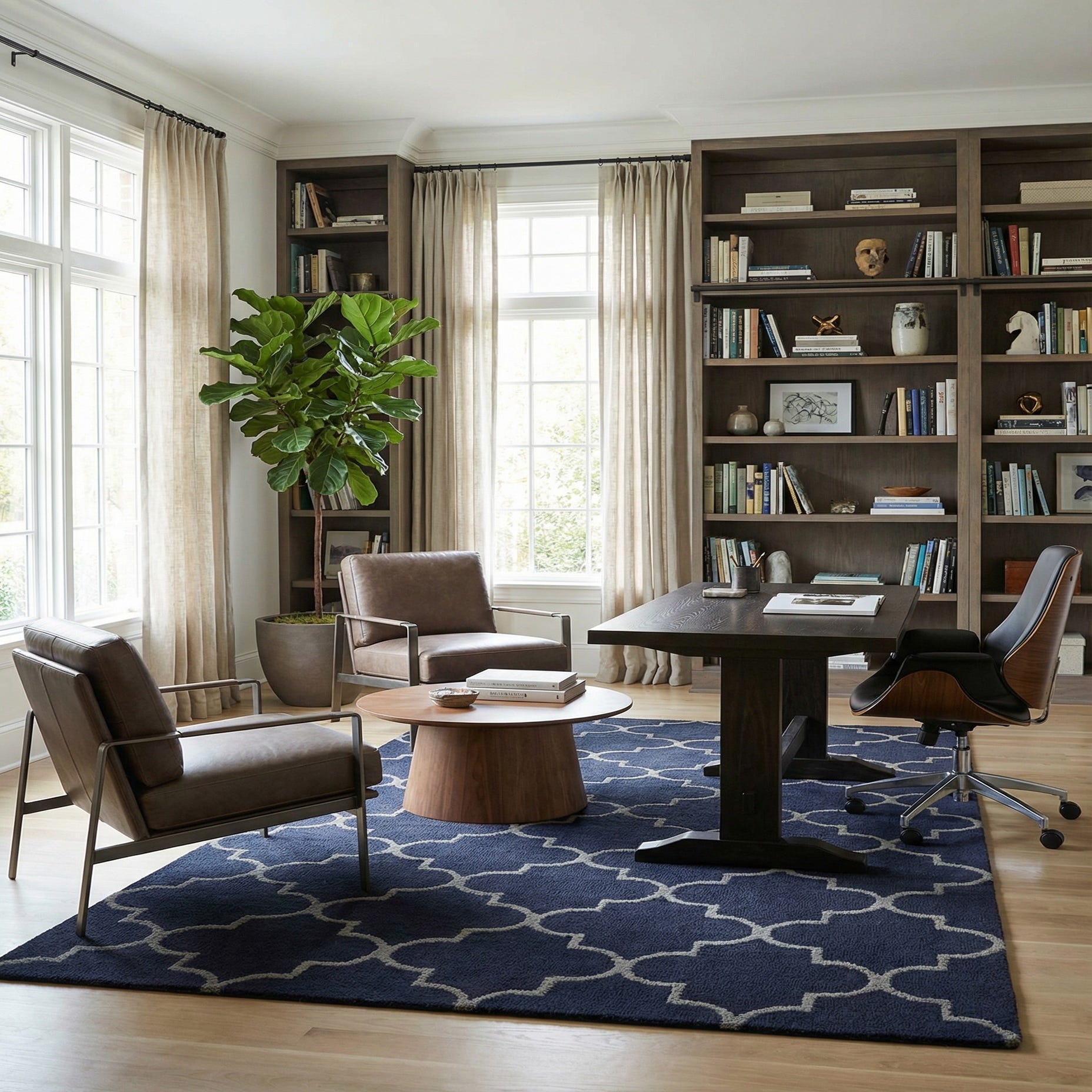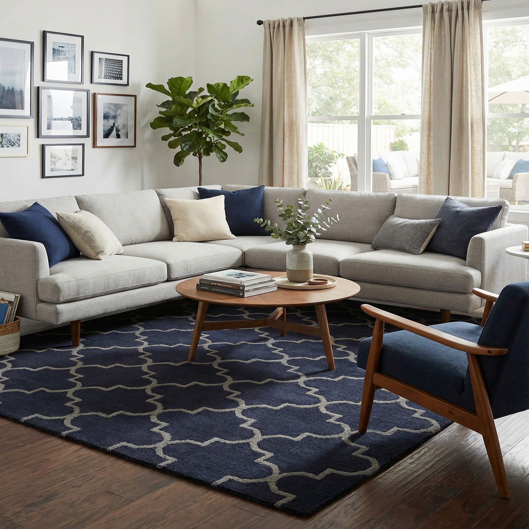 Primary color is Navy Blue. Colors in this rug include: Navy Blue, Gray.