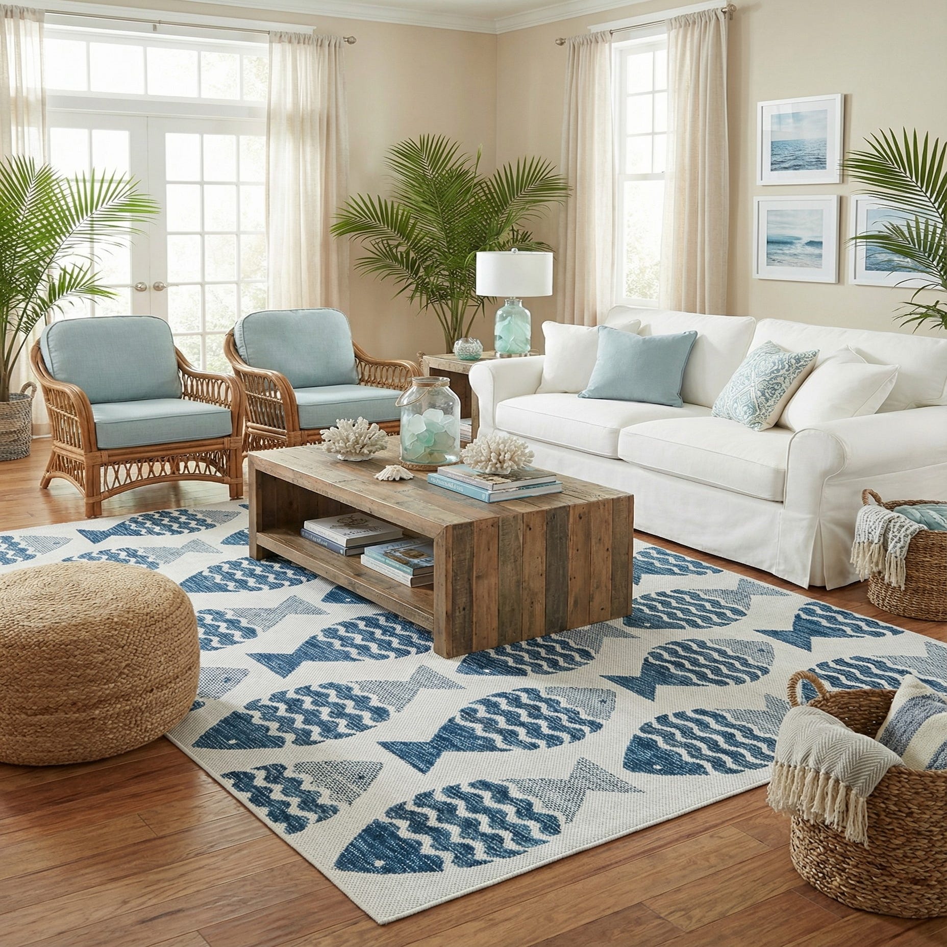 5' 3 x 8' Washable Coastal Indoor / Outdoor Rug