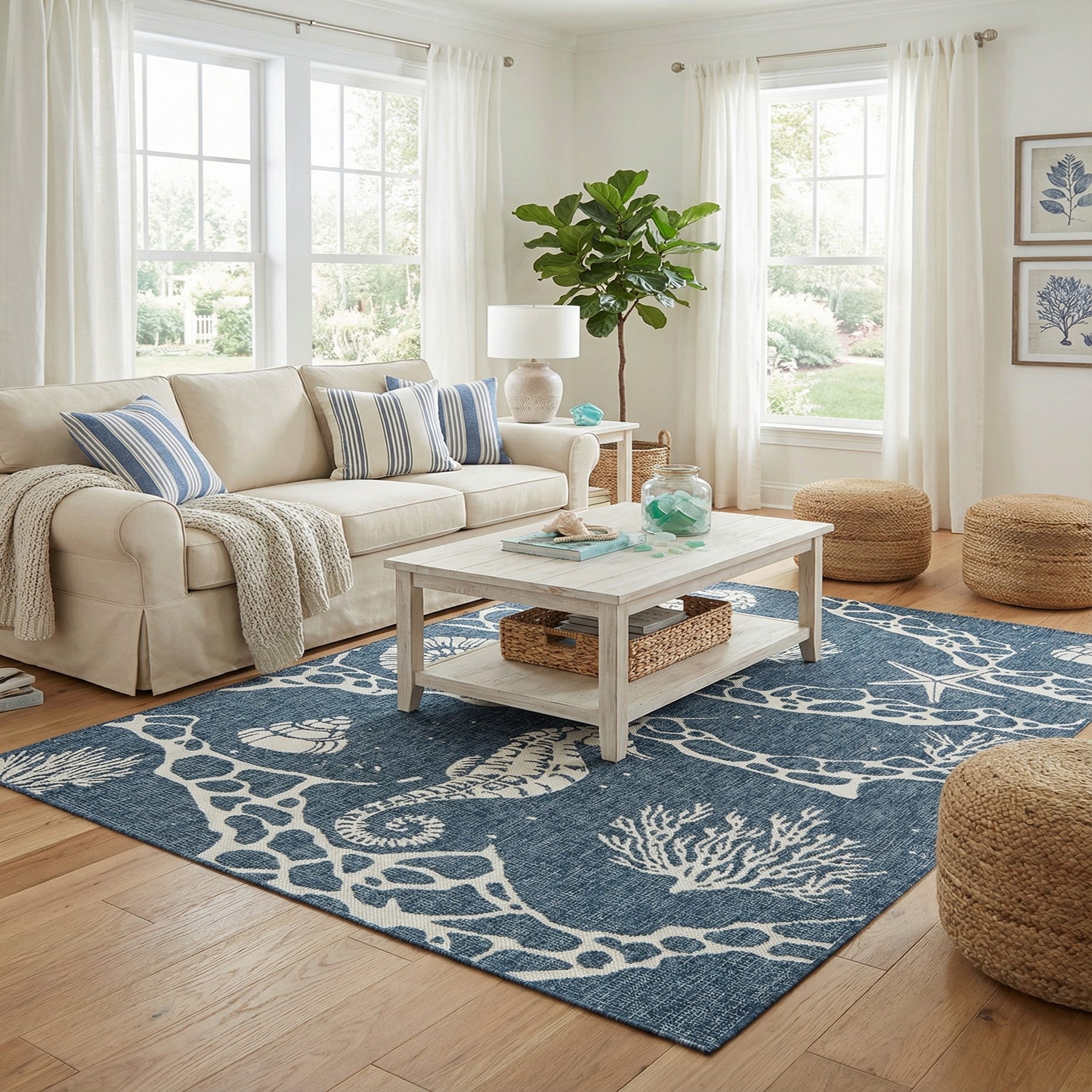 5' 3 x 8' Washable Coastal Indoor / Outdoor Rug