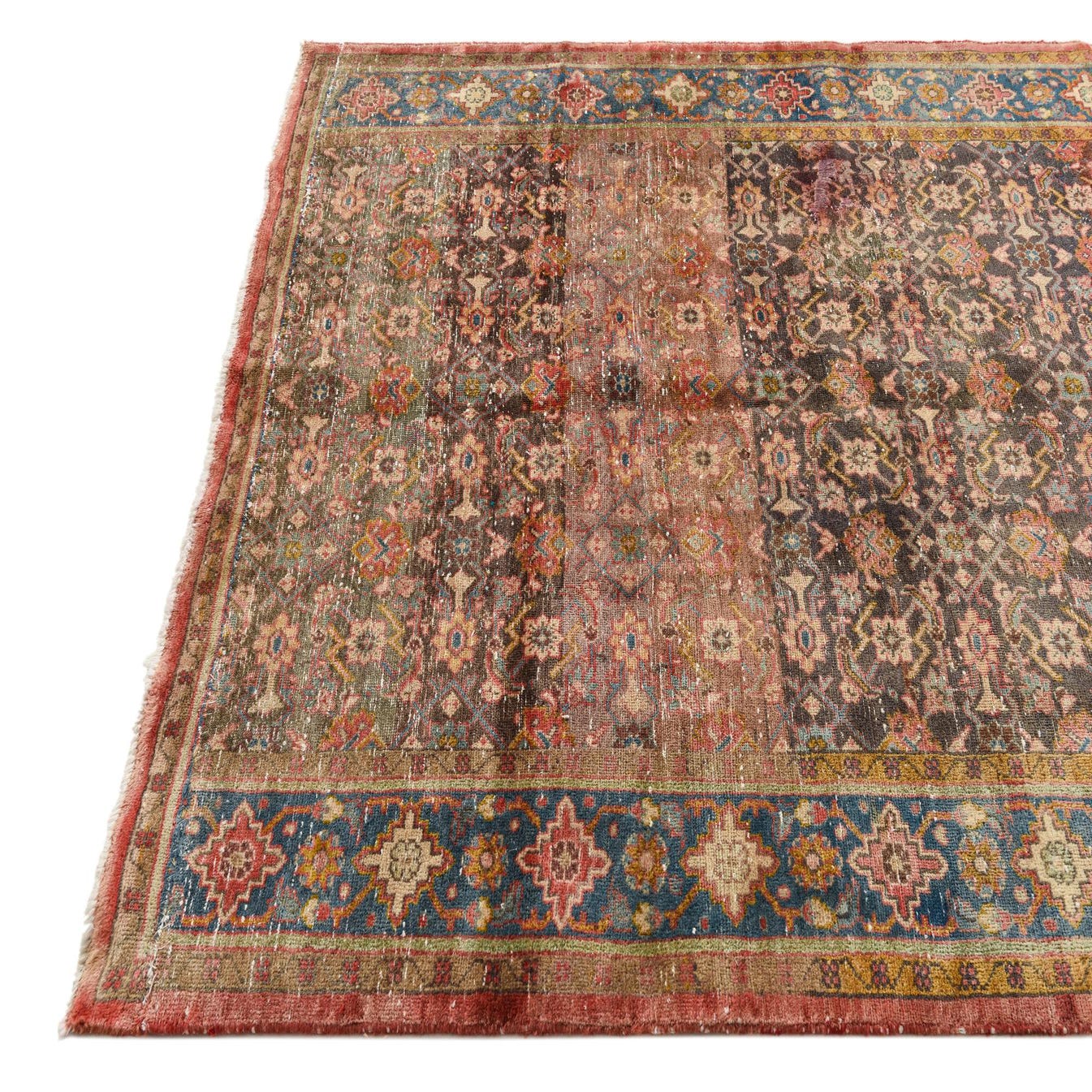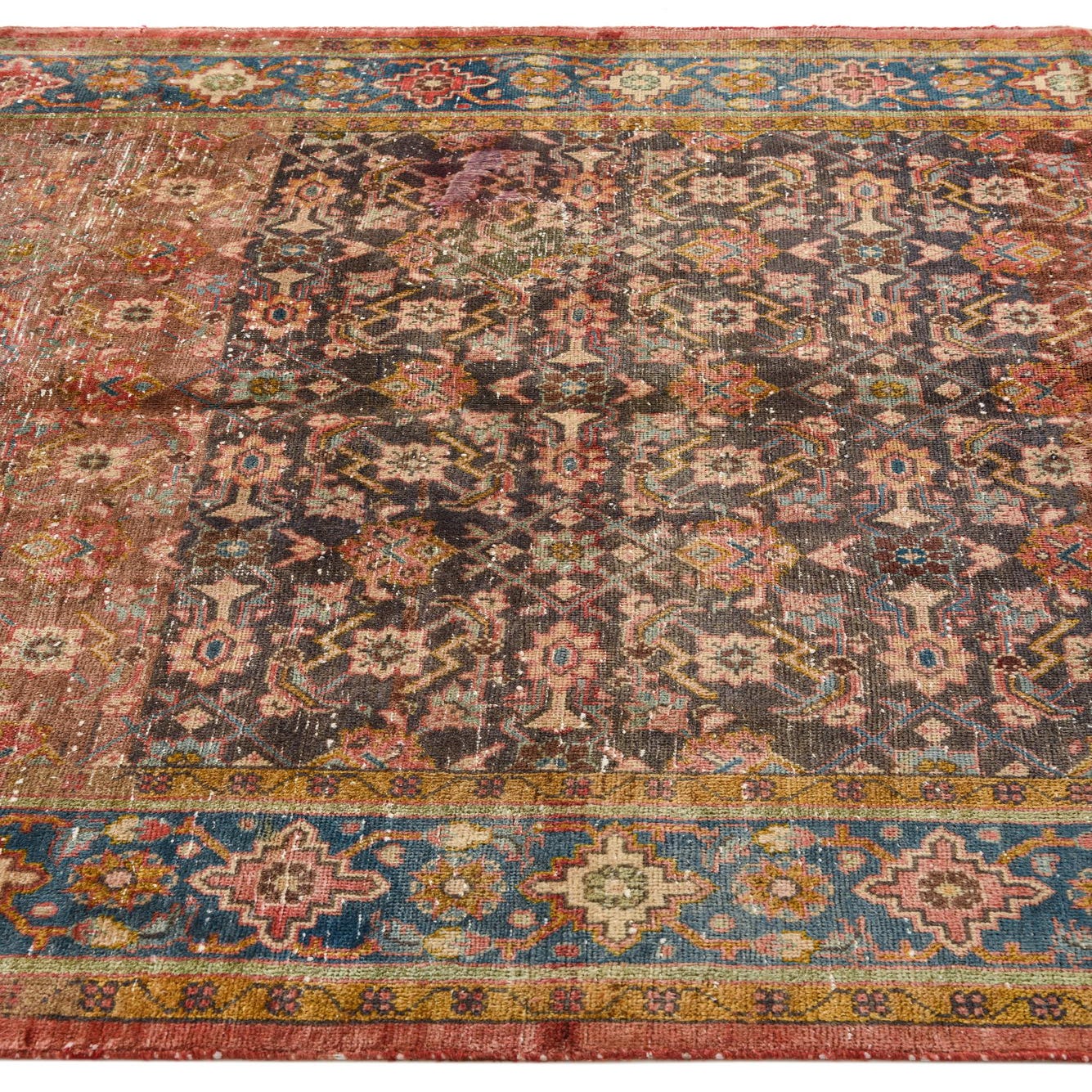 This Persian Ultra Vintage rug is an antique Persian Rug that has been washed, over-dyed, and then shaved down to a low pile. Look at the detail pictures to fully appreciate the uniqueness of this piece.