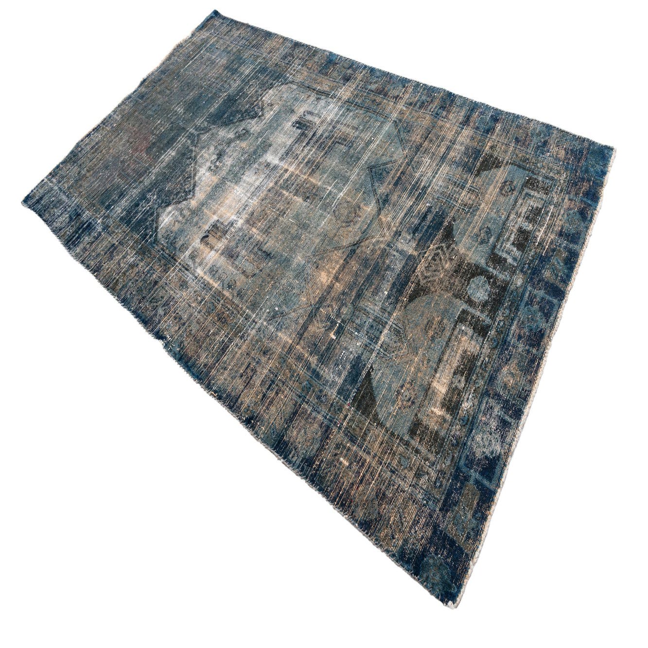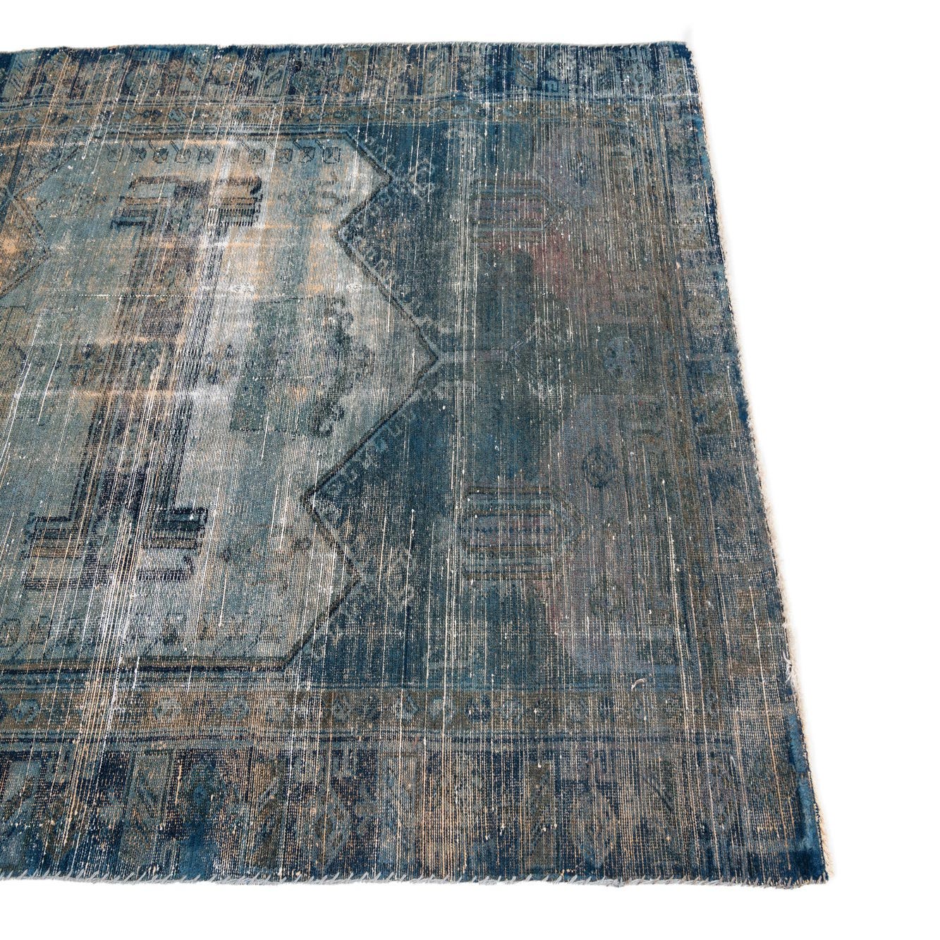 This Persian Ultra Vintage rug is an antique Persian Rug that has been washed, over-dyed, and then shaved down to a low pile. Look at the detail pictures to fully appreciate the uniqueness of this piece.