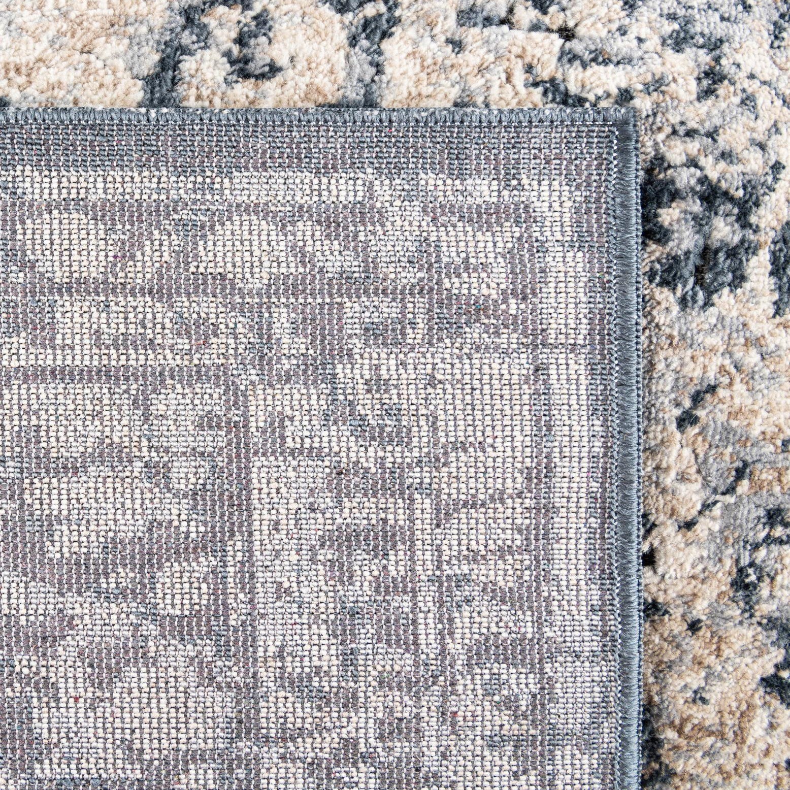 Primary color is Navy Blue. Colors in this rug include: Navy Blue, Beige, Cream, Gray, Ivory.