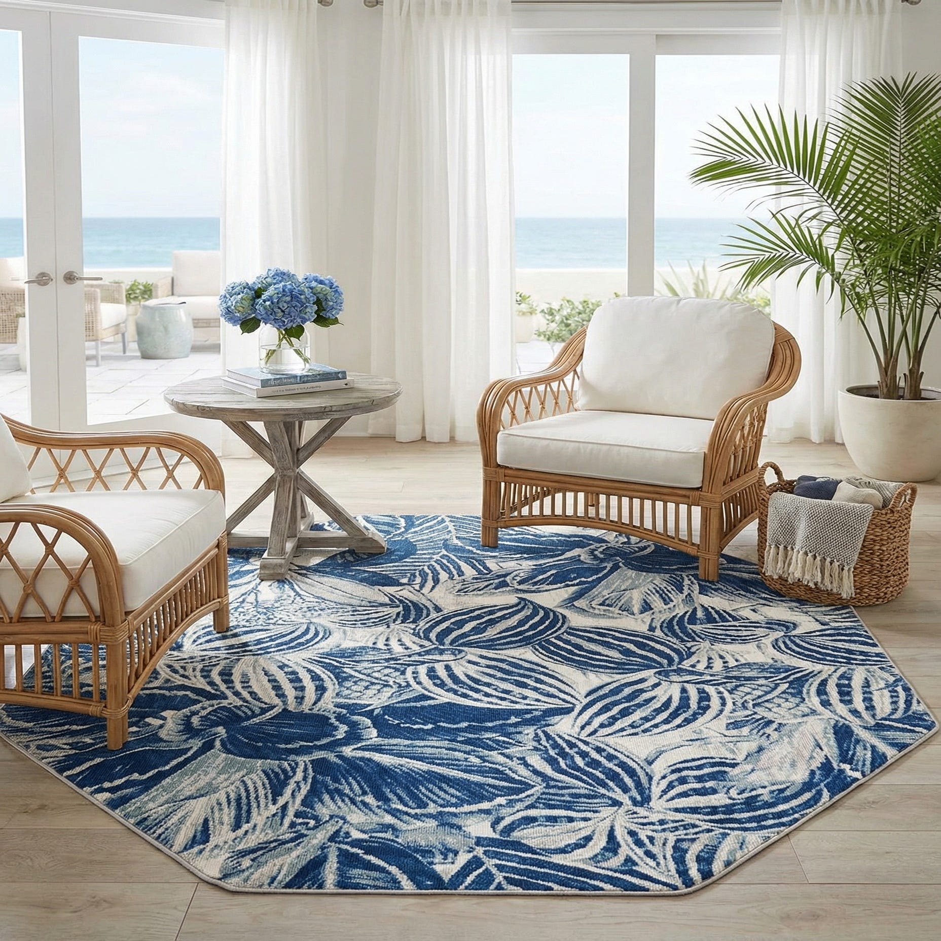 Primary color is Navy Blue. Colors in this rug include: Navy Blue, Ivory, Gray, Light Blue.