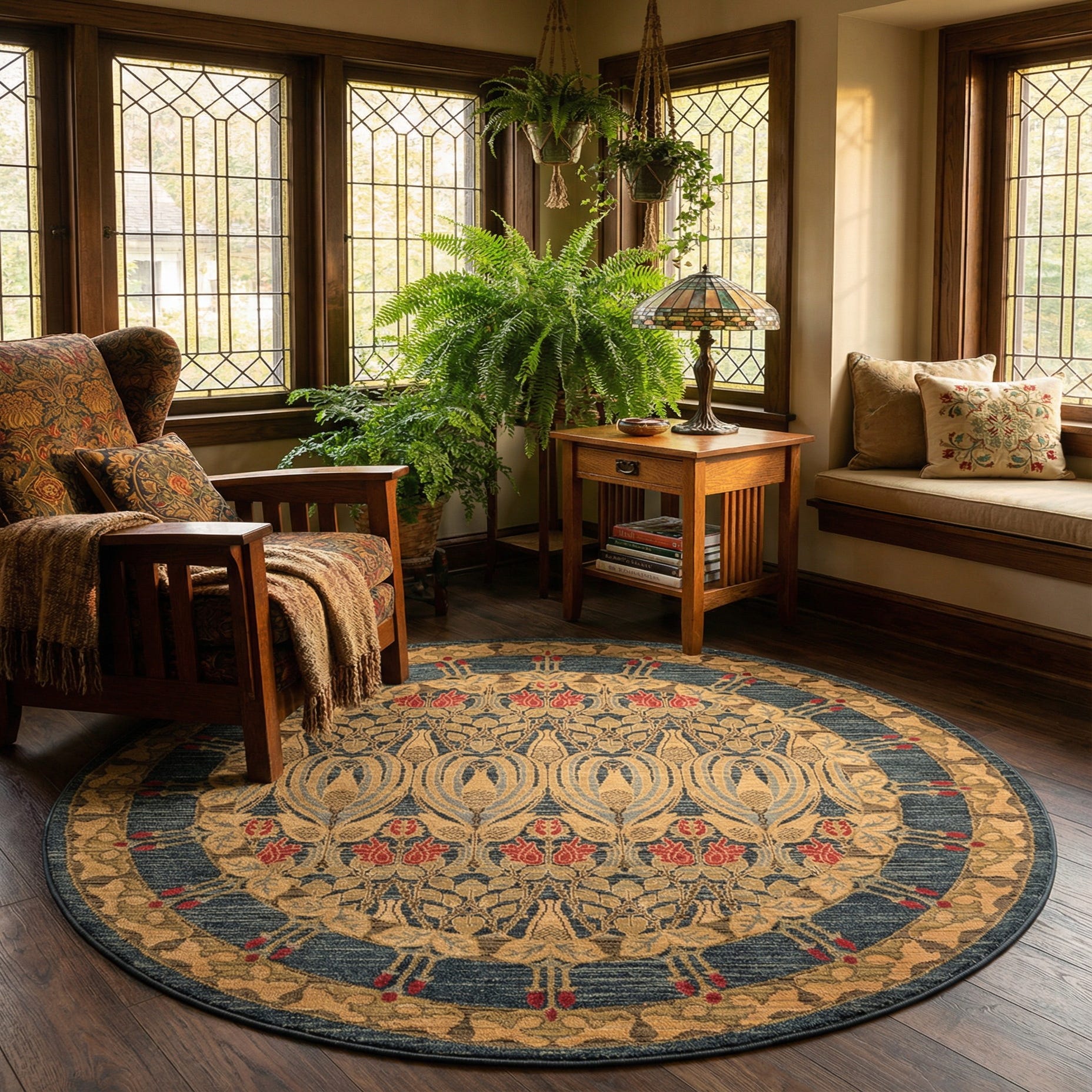 Primary color is Navy Blue. Colors in this rug include: Navy Blue, Tan, Olive, Red, Blue, Brown.