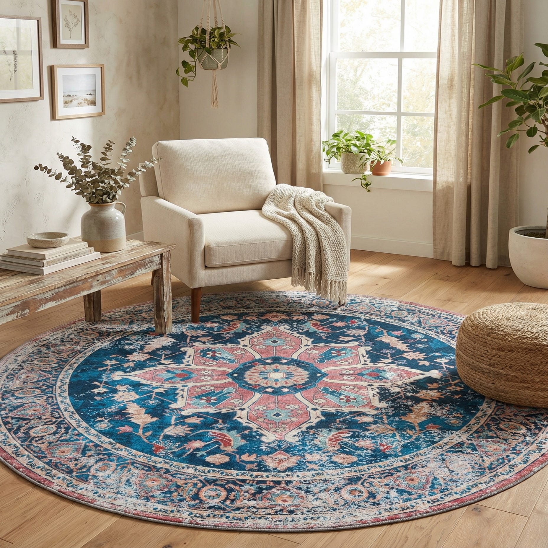Detail image of 6' x 6'  Washable Yara Round Rug