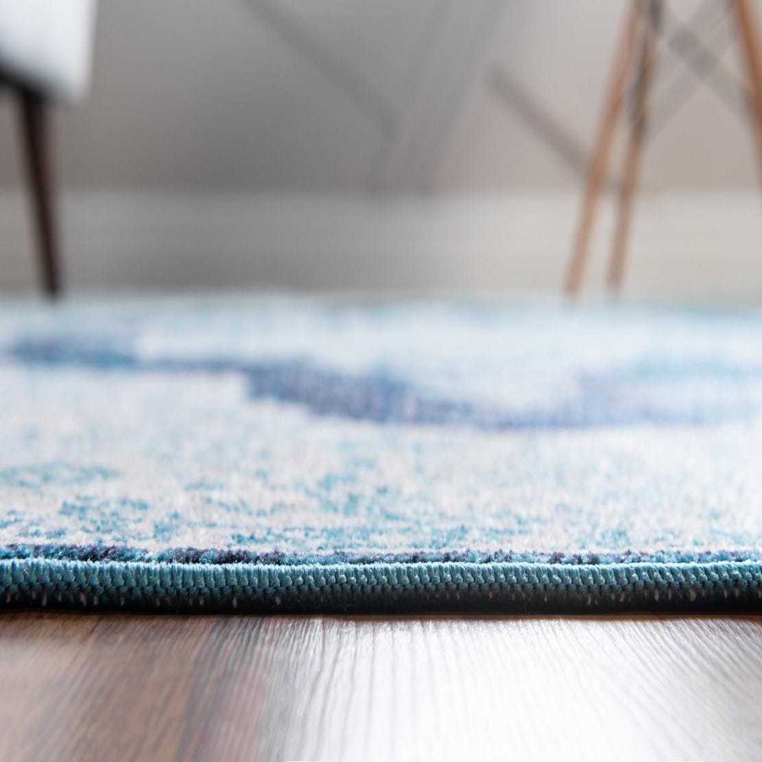 Primary color is Navy Blue. Colors in this rug include: Navy Blue, Cream, Gray, Ivory, Teal, Beige.