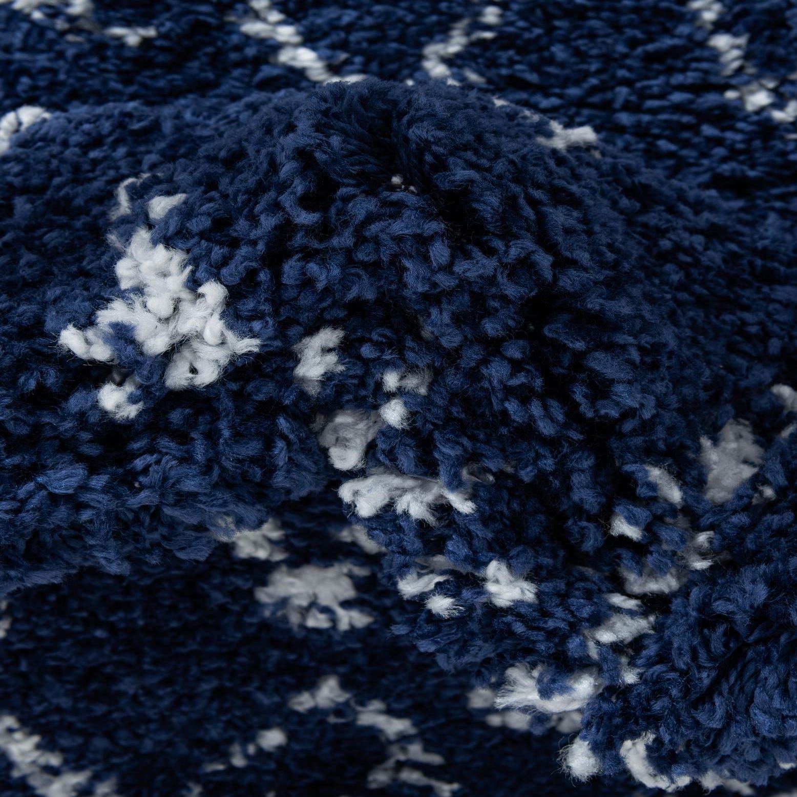 Primary color is Navy Blue. Colors in this rug include: Navy Blue, Ivory.