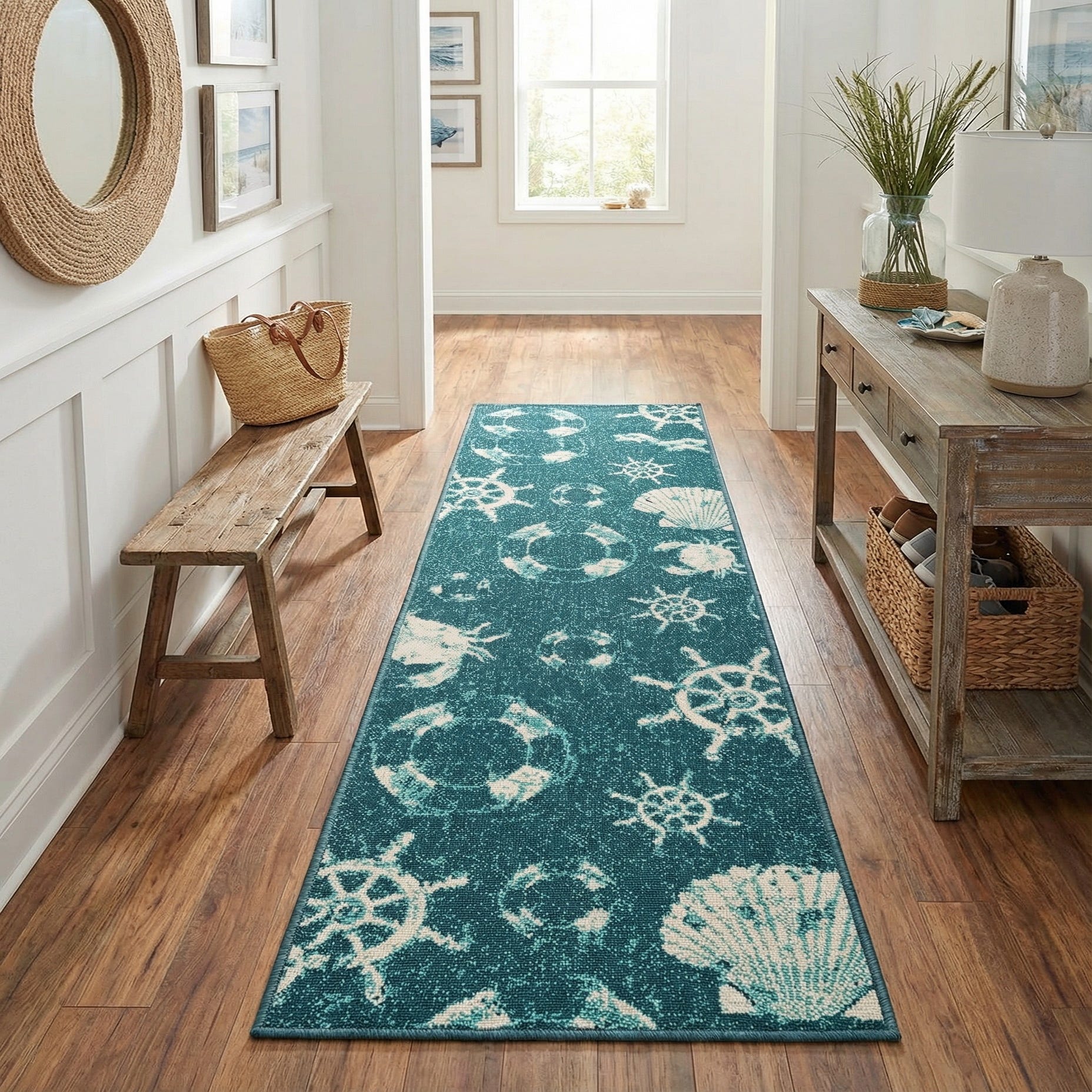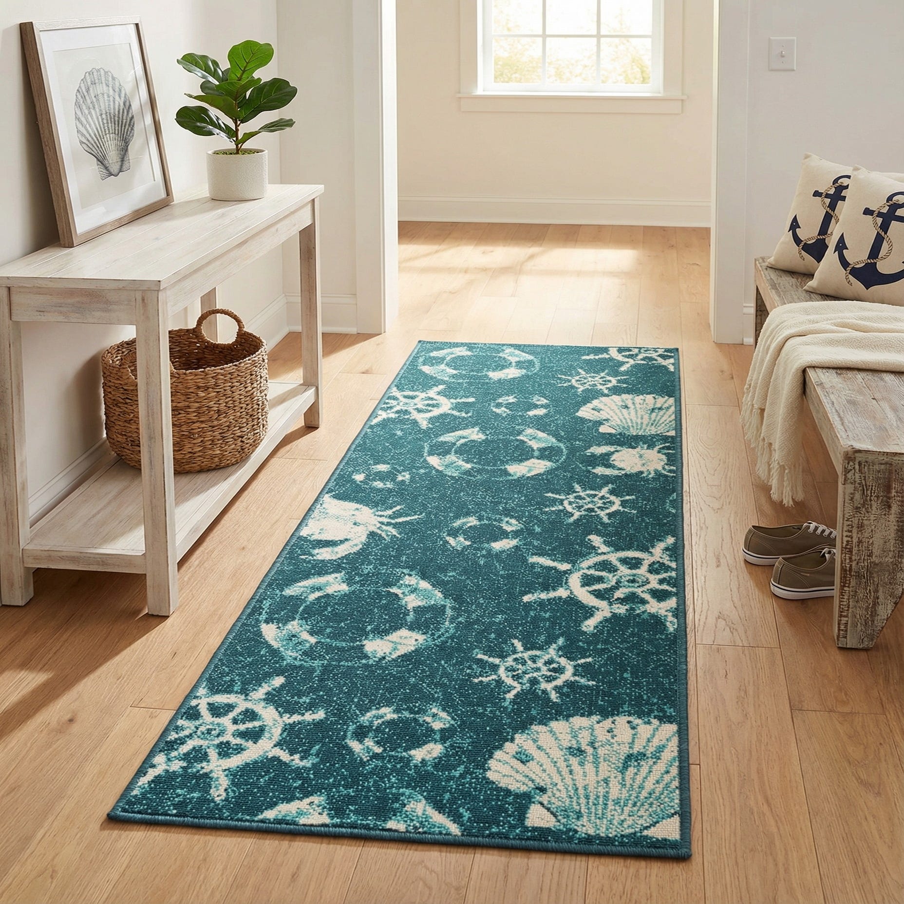 2' x 6' Washable Coastal Indoor / Outdoor Runner Rug