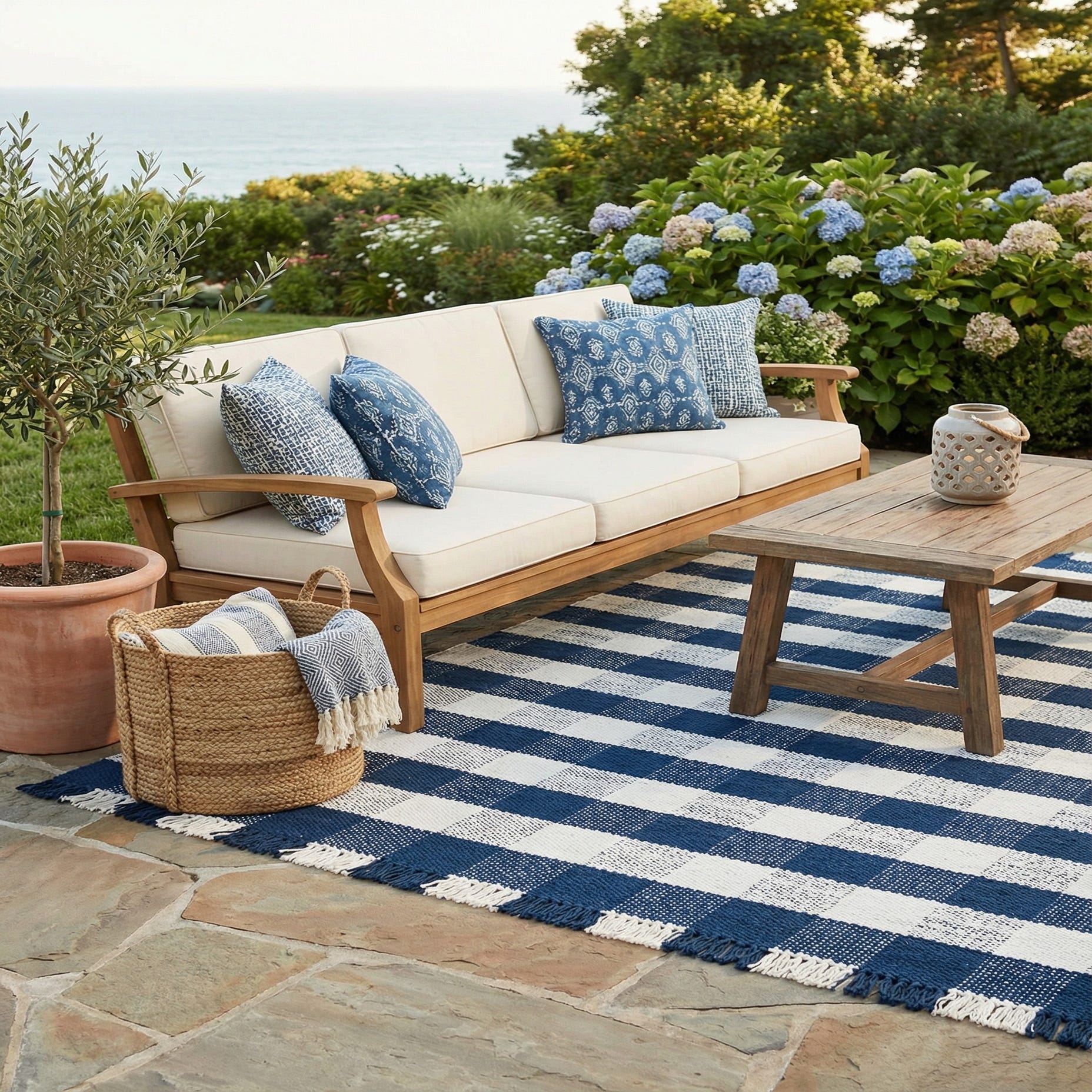 6' x 6' Eco Plaid Washable Indoor / Outdoor Square Rug