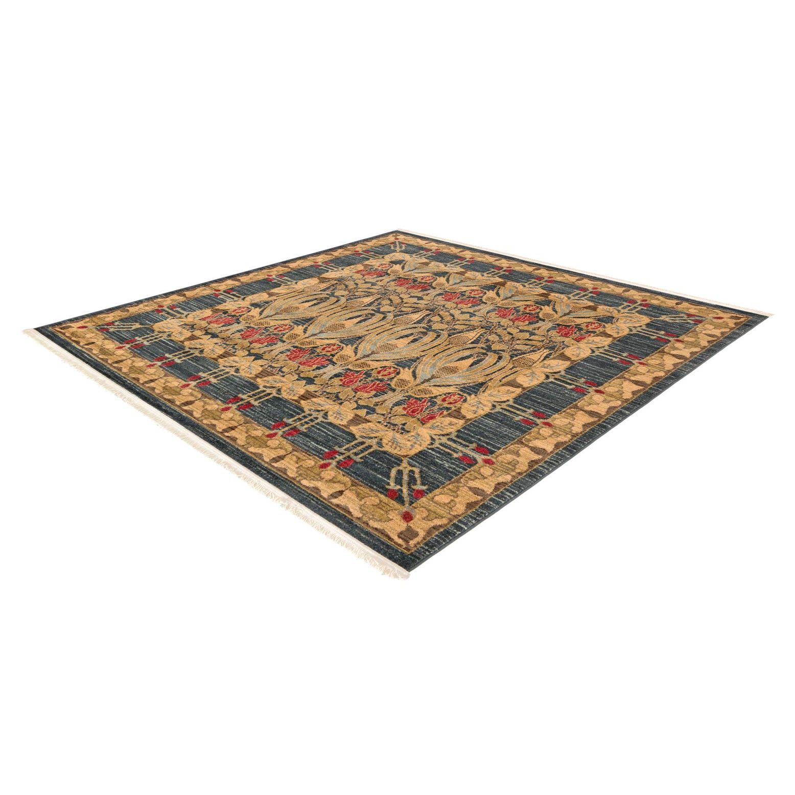 Primary color is Navy Blue. Colors in this rug include: Navy Blue, Tan, Olive, Red, Blue, Brown.