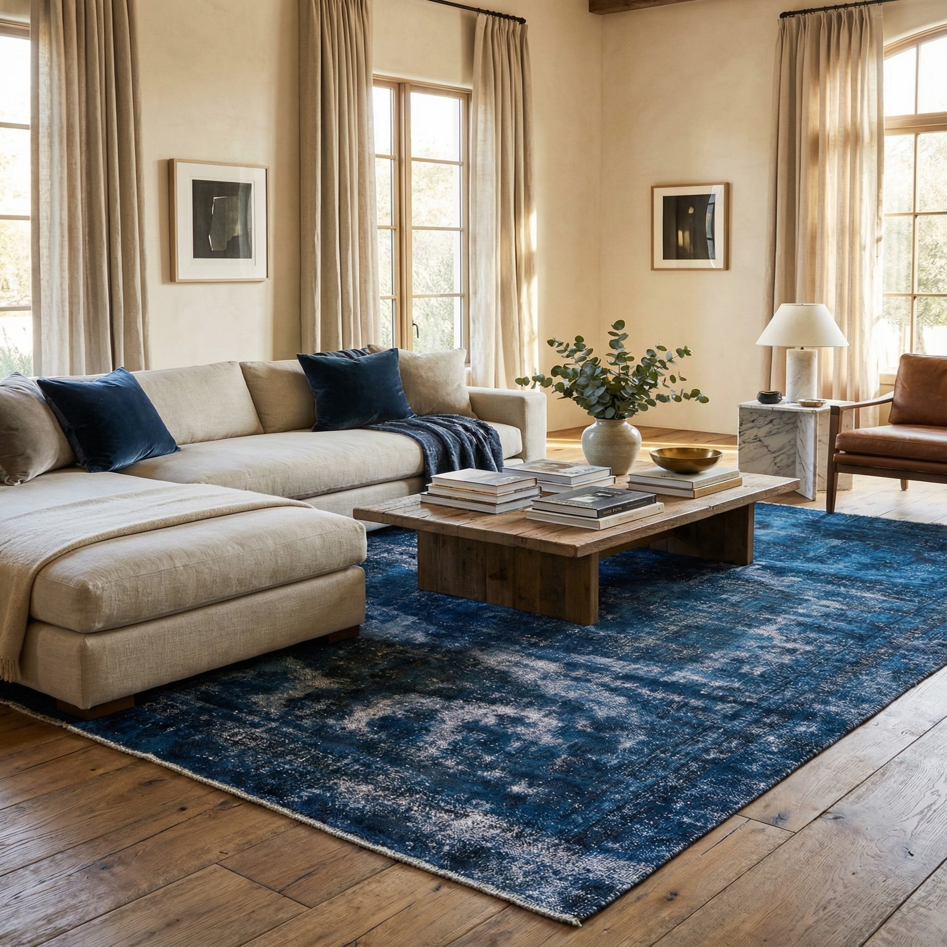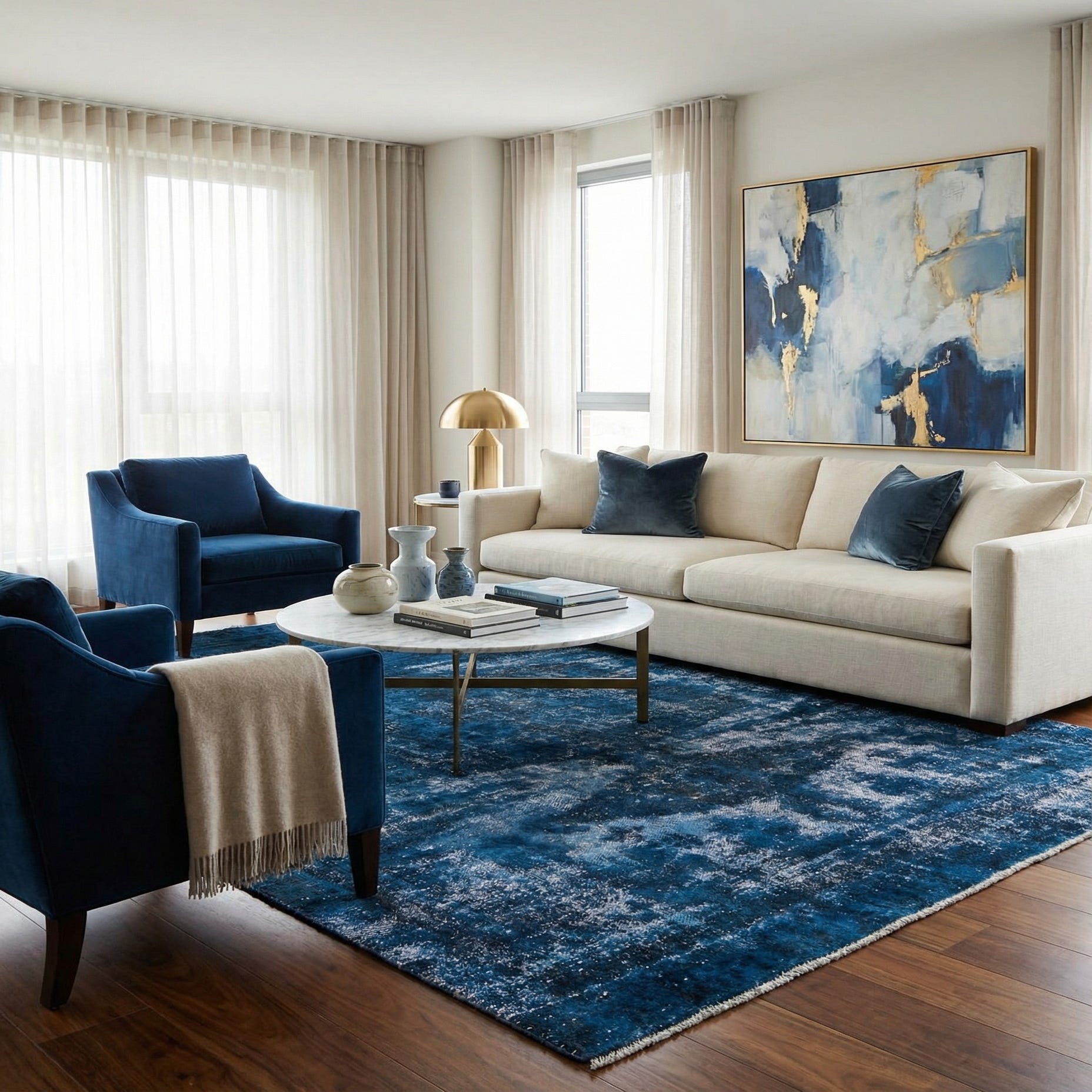 Primary color is Navy Blue. Colors in this rug include: Navy Blue, Black.