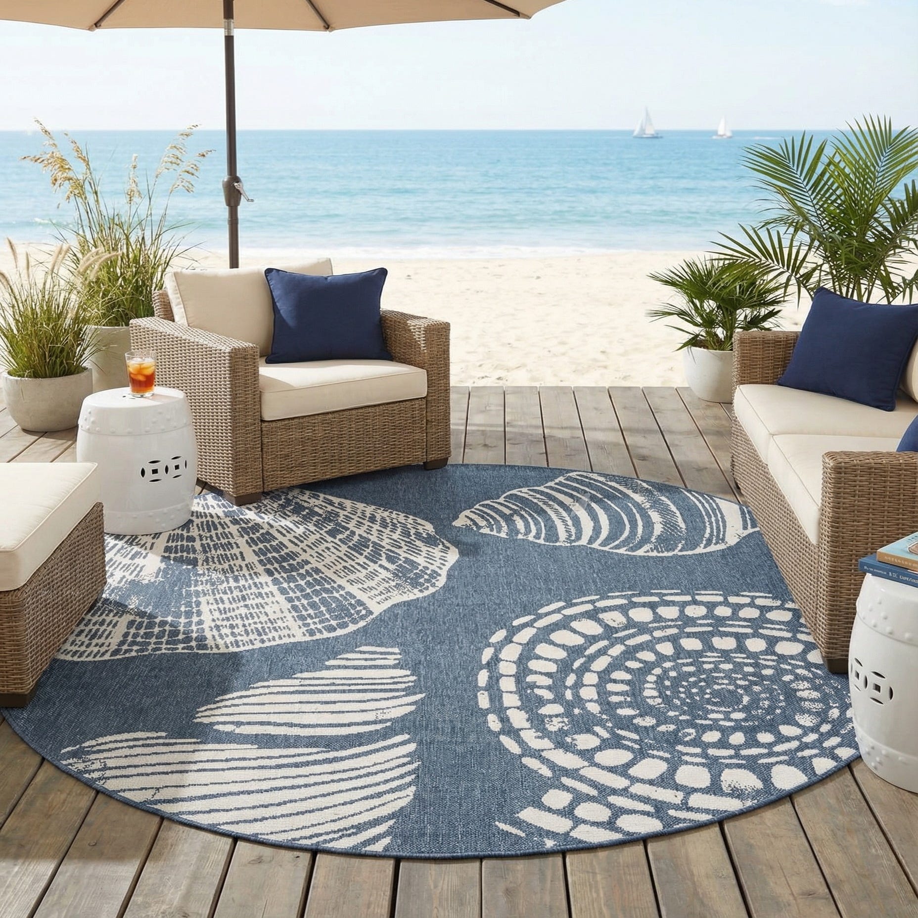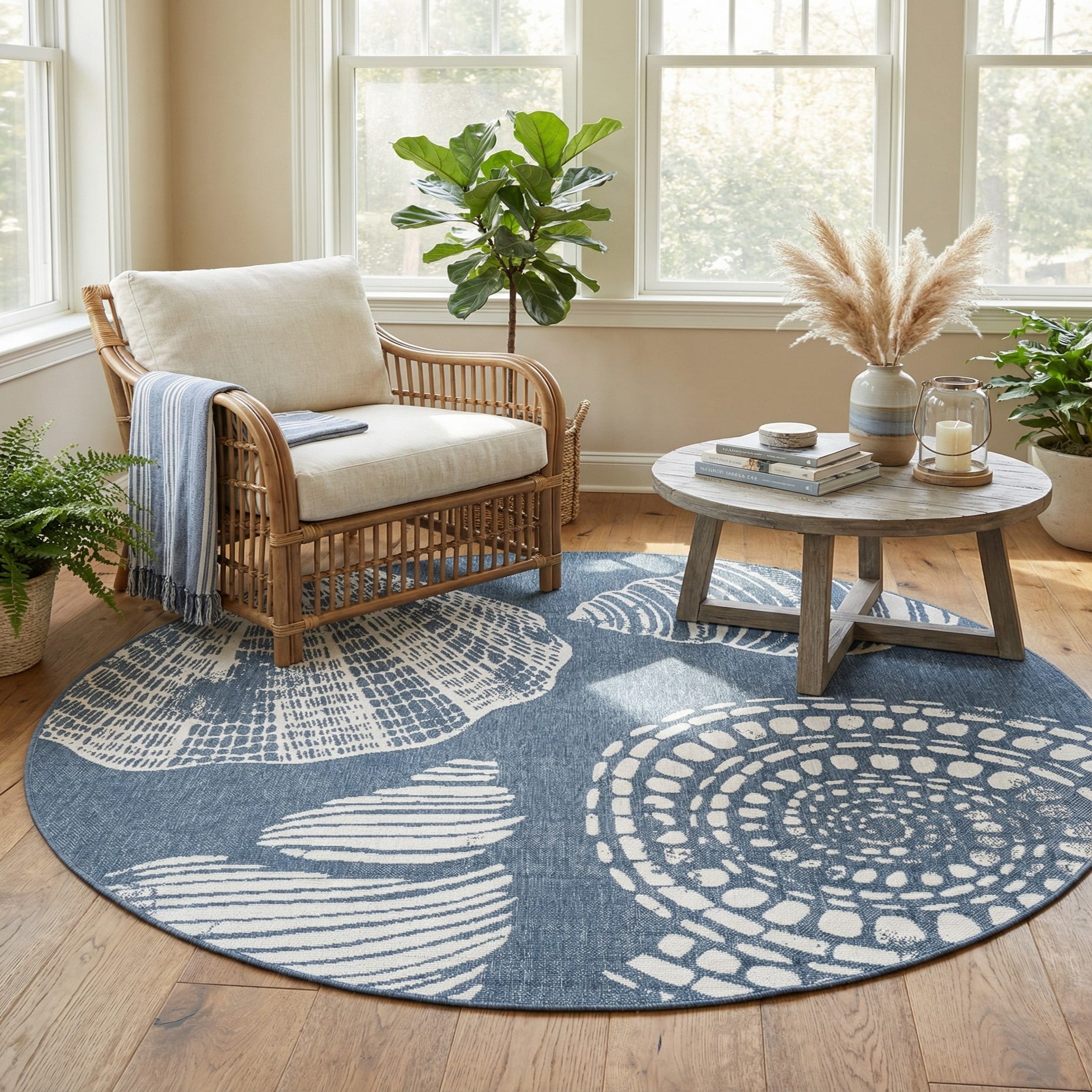 7' x 7' Easy-Clean Coastal Indoor / Outdoor Round Rug