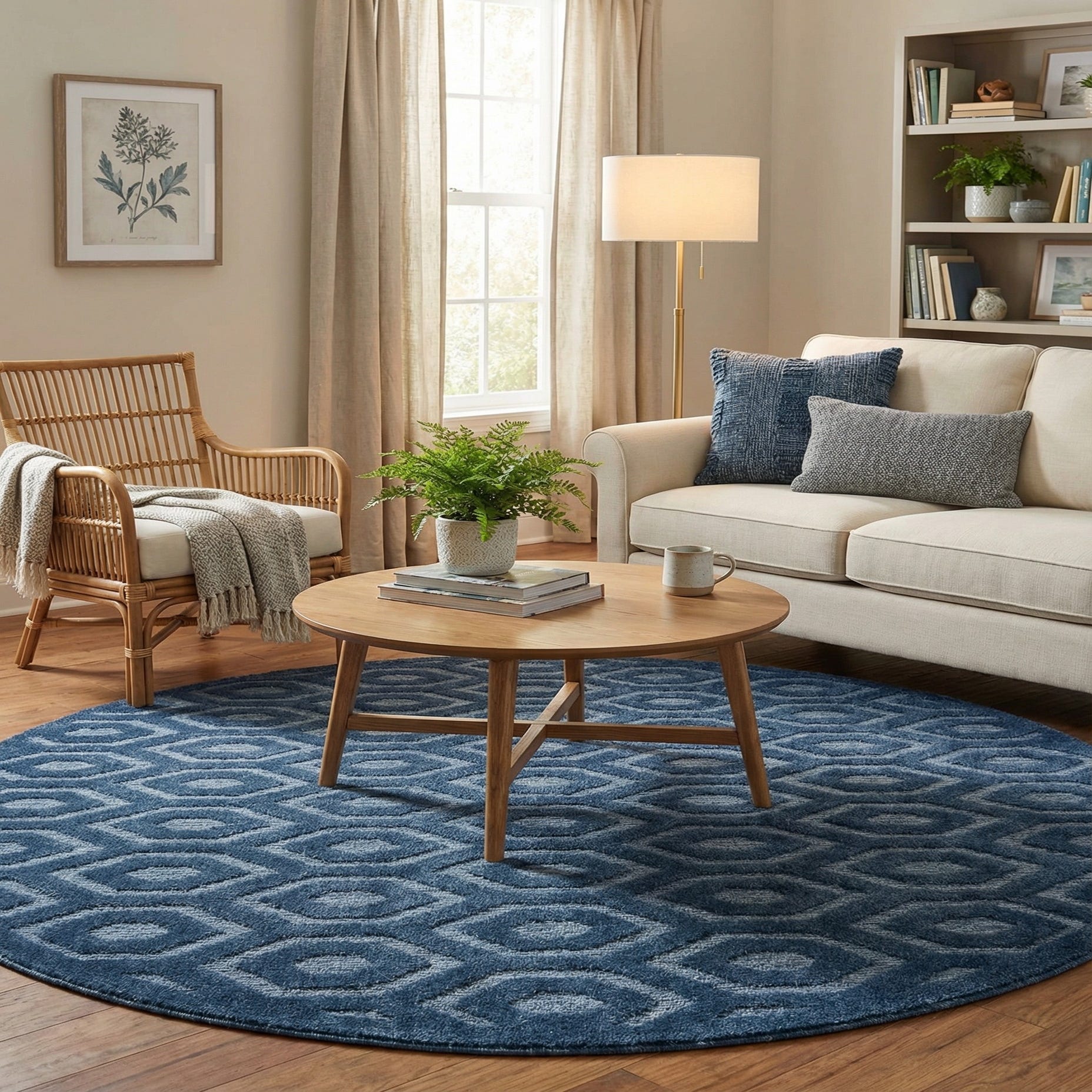 Primary image 7' x 7'  Washable Trellis Textured Indoor / Outdoor Round Rug