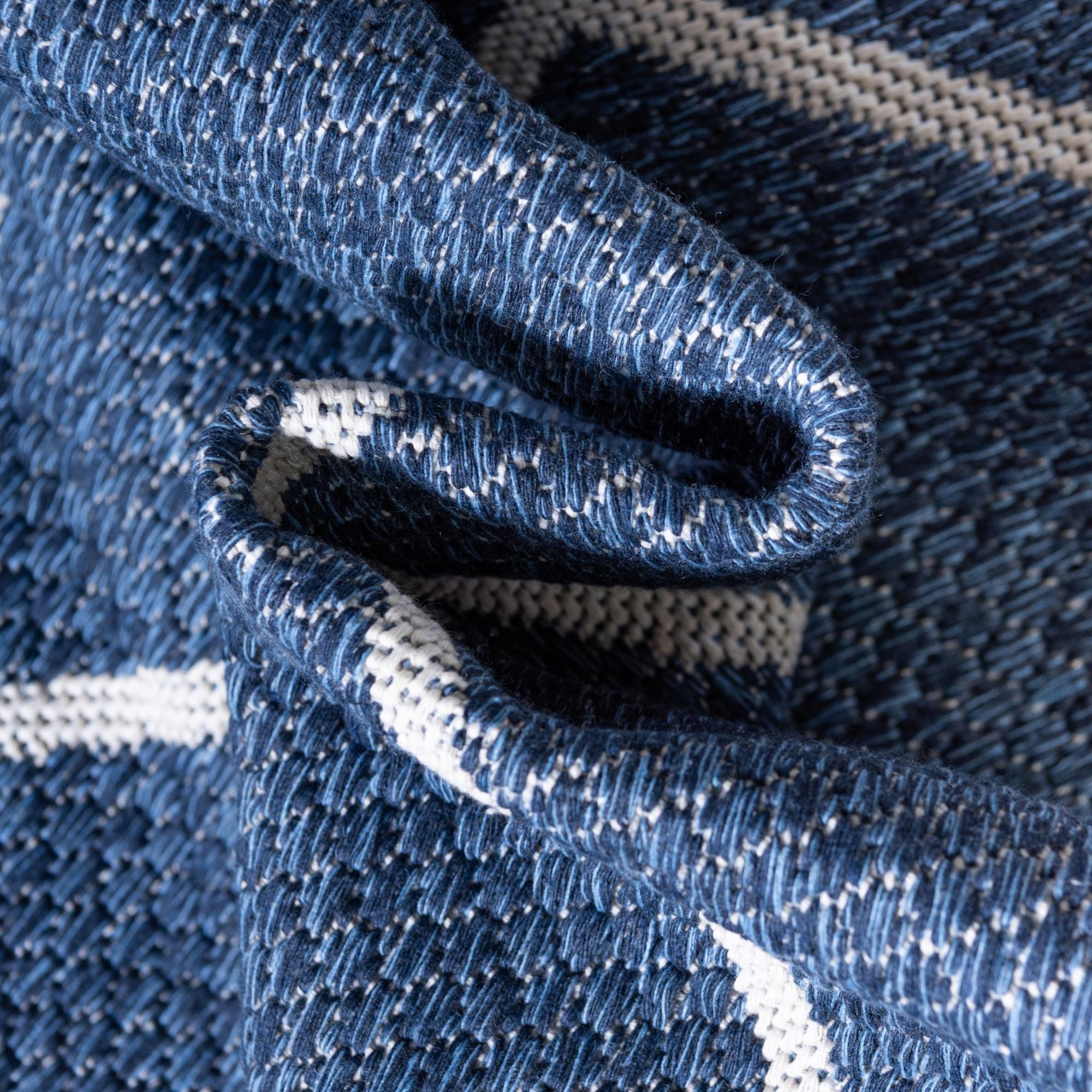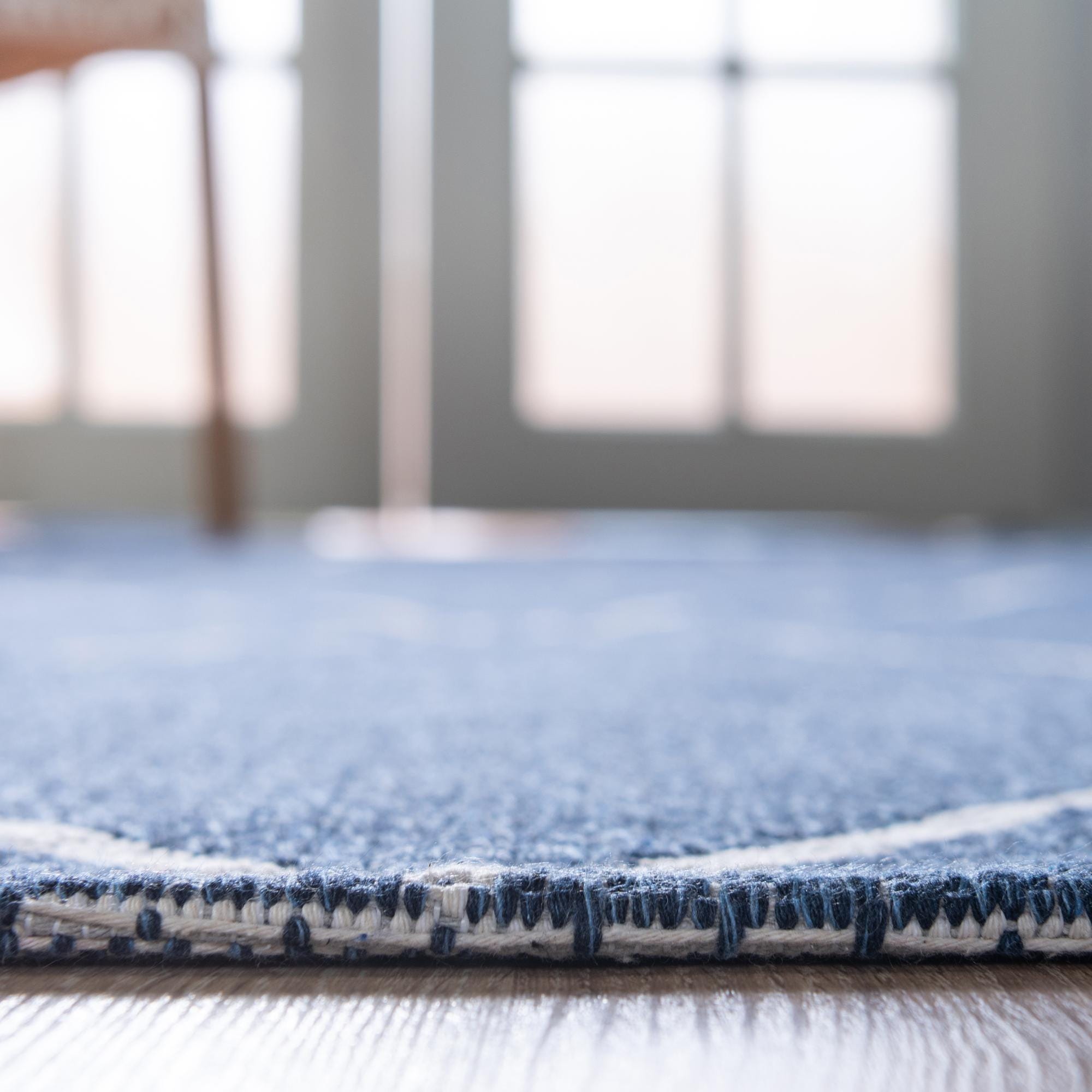 Primary color is Navy Blue. Colors in this rug include: Navy Blue, Ivory.