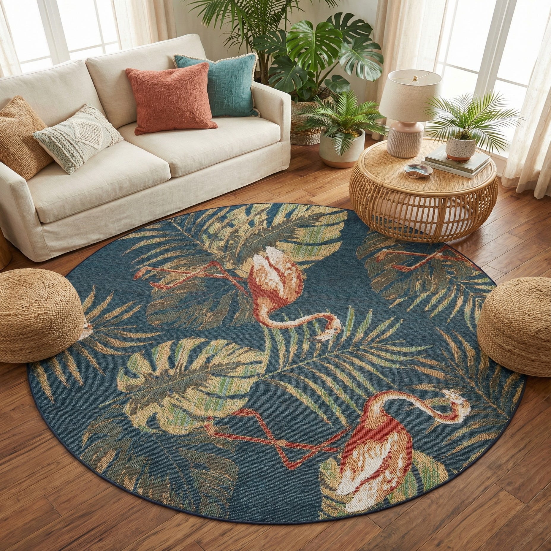 Primary image 7' 10 x 7' 10  Washable Baja Indoor / Outdoor Round Rug