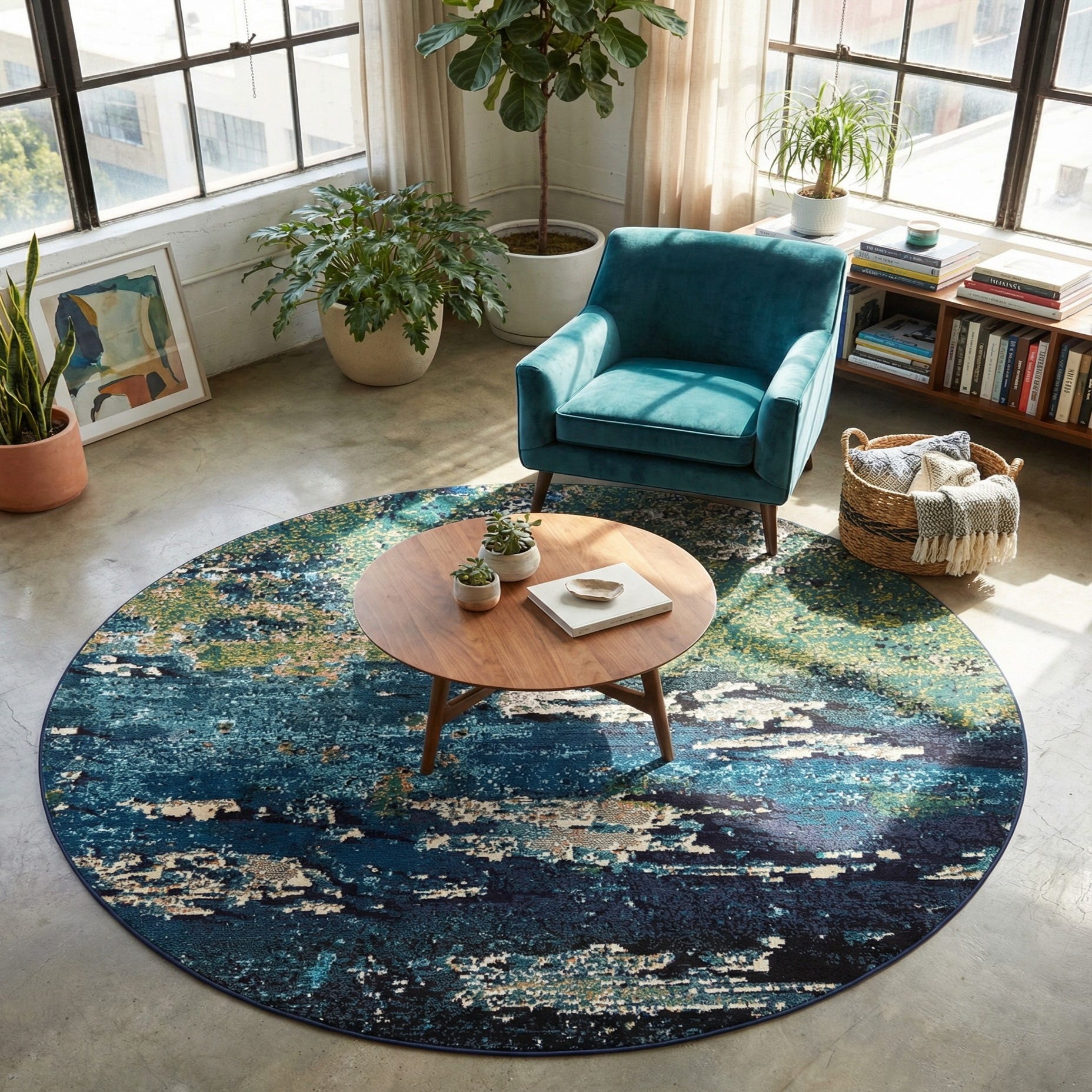 Primary image 8' x 8'  Washable Casablanca Round Rug