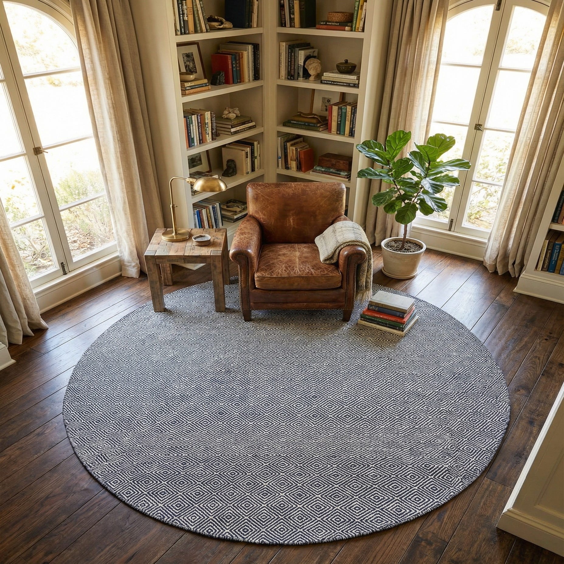 7' 10 x 7' 10 Hand Woven Geo Trellis Flatweave Round Rug