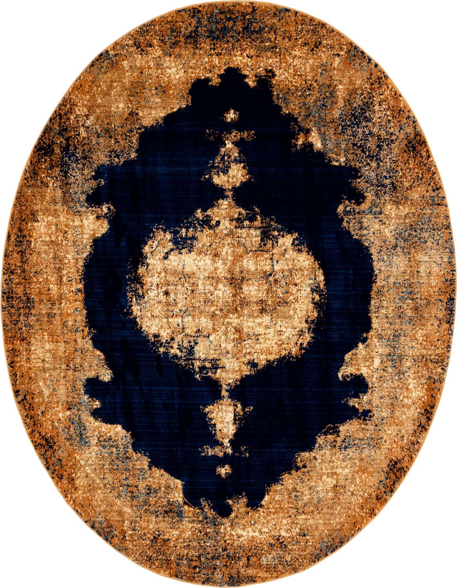 Primary color is Navy Blue. Colors in this rug include: Navy Blue, Blue, Cream, Ivory, Orange.