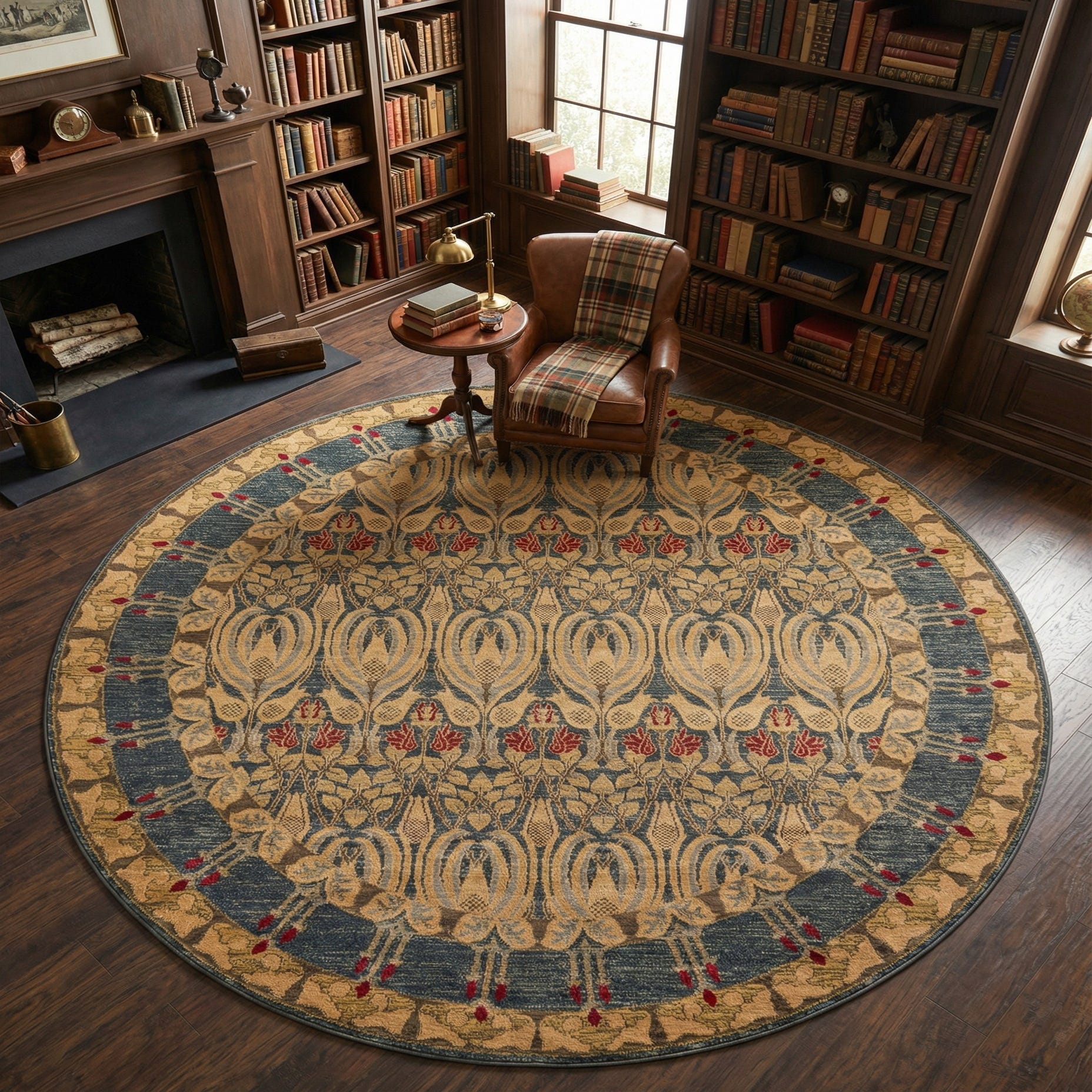 Primary color is Navy Blue. Colors in this rug include: Navy Blue, Tan, Olive, Red, Blue, Brown.