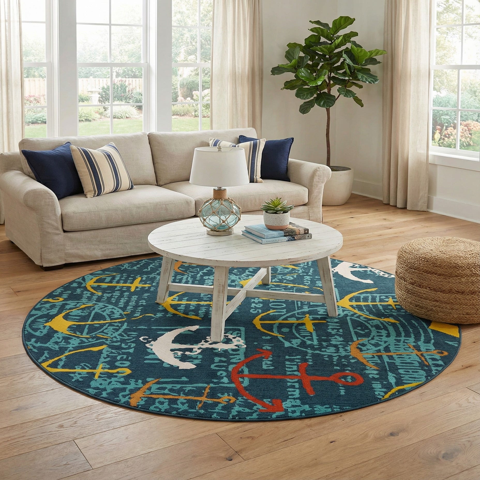 7' 10 x 7' 10 Washable Coastal Indoor / Outdoor Round Rug