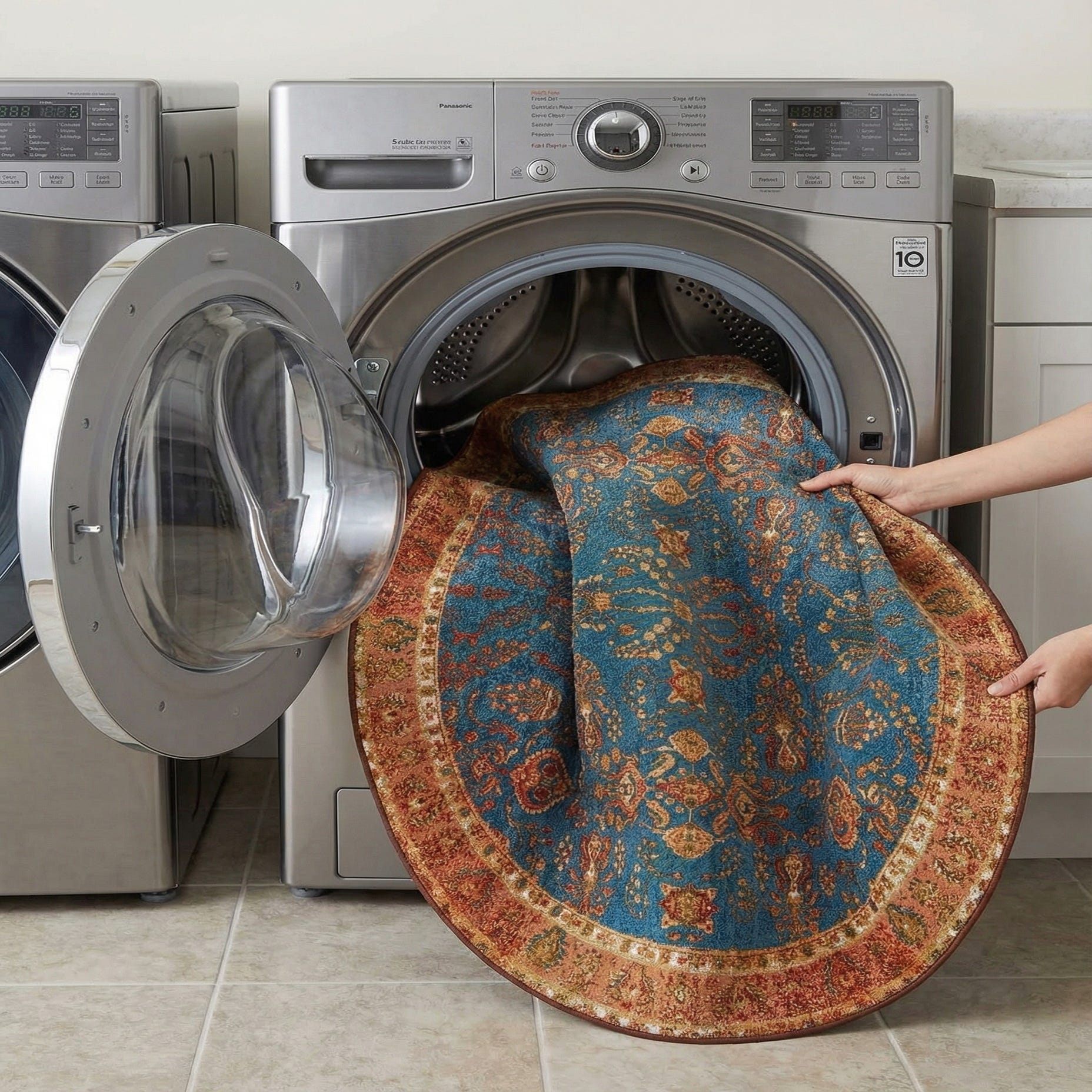 Primary image 7' 10 x 7' 10  Washable Traditional Indoor / Outdoor Round Rug