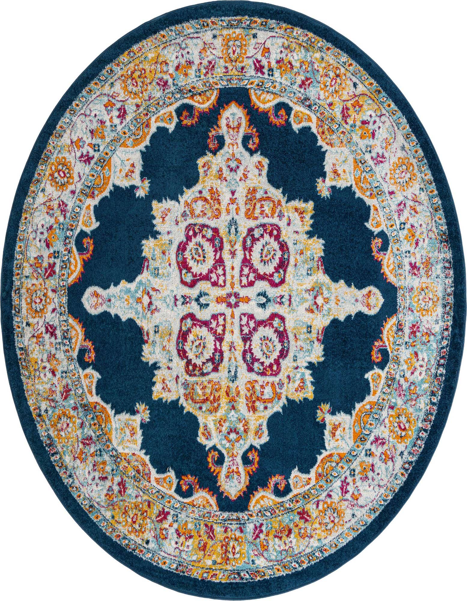Primary color is Navy Blue. Colors in this rug include: Navy Blue, Beige, Blue, Brown, Gold, Gray, Ivory, Yellow, Pink.