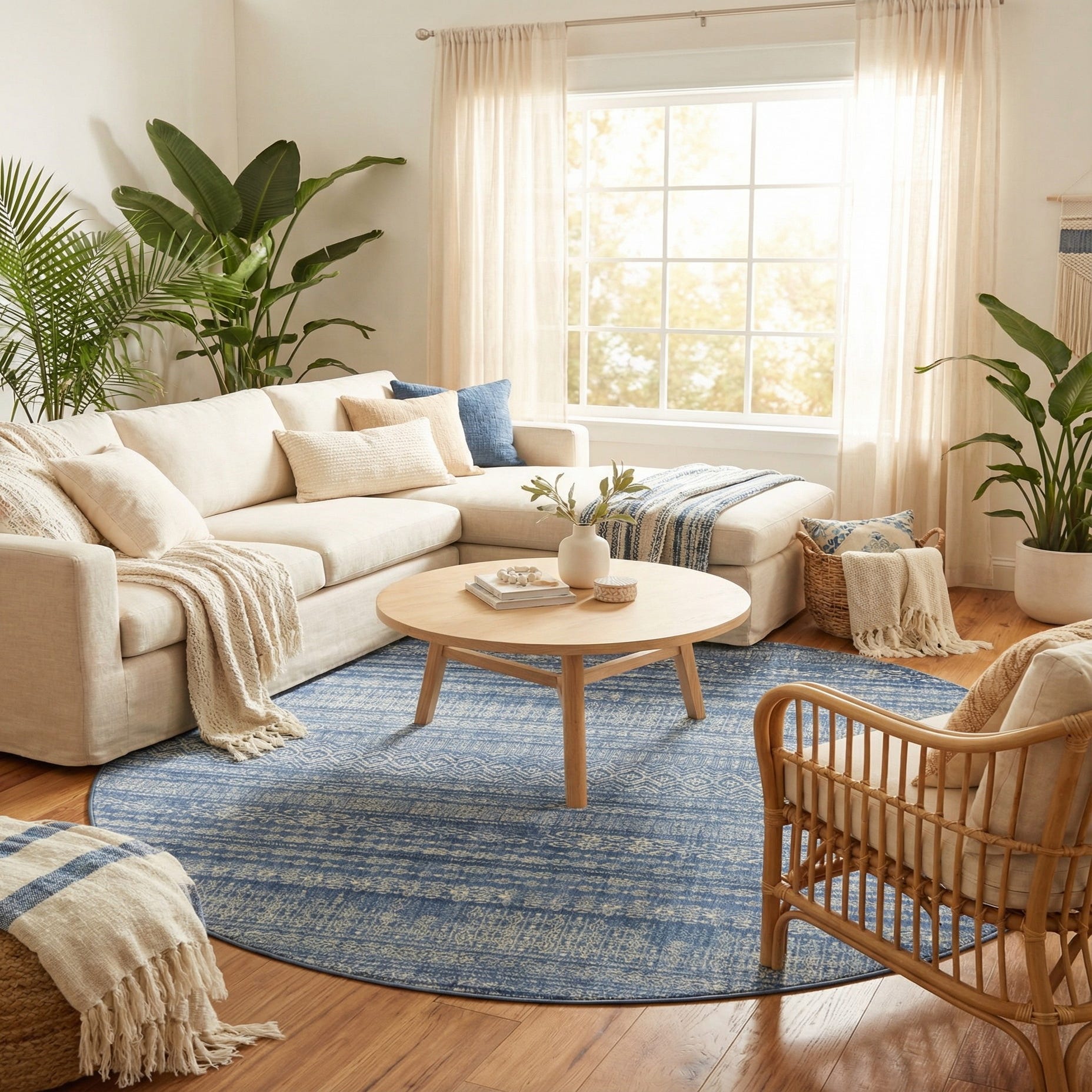 Primary color is Navy Blue. Colors in this rug include: Navy Blue, Blue, Ivory.