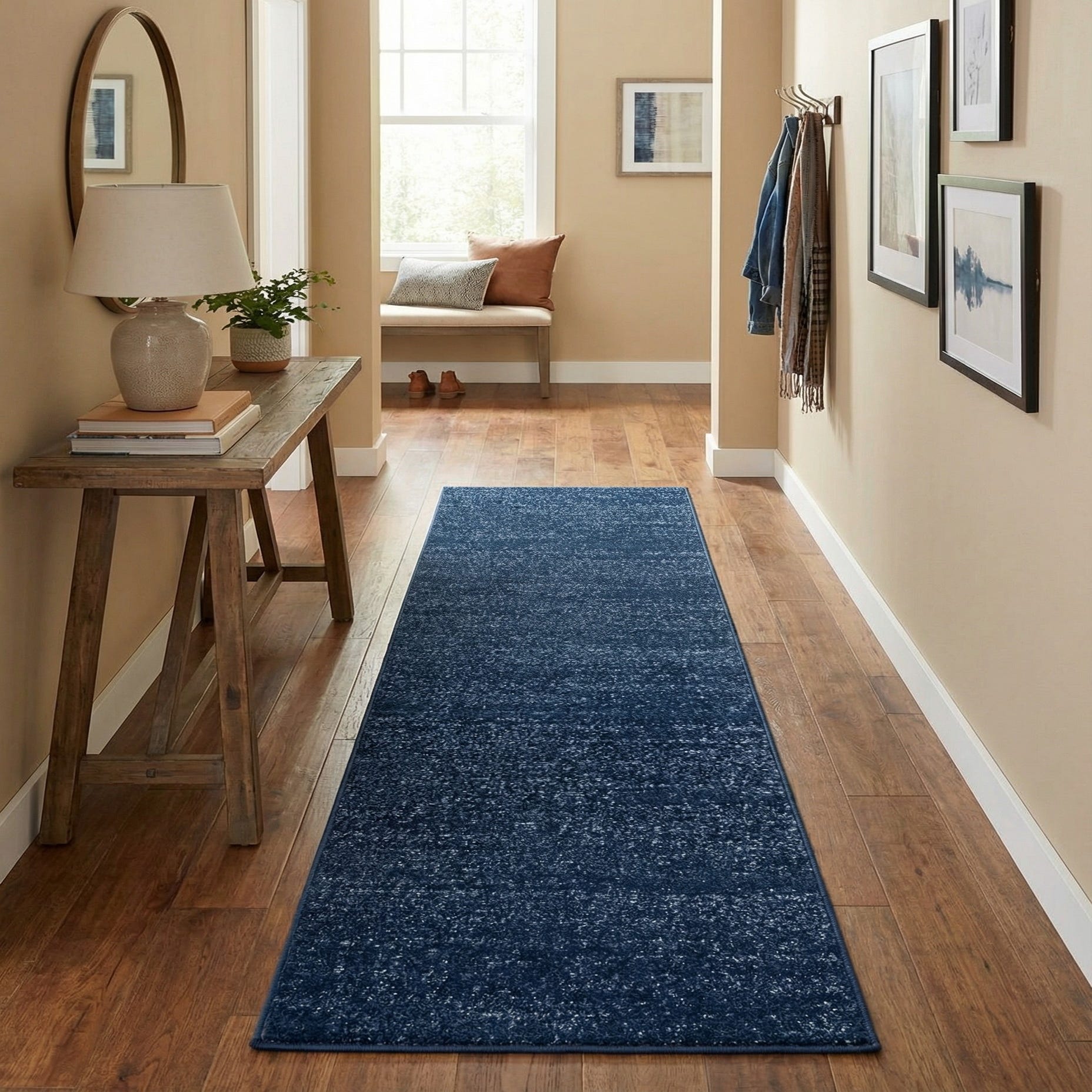 Primary color is Navy Blue. Colors in this rug include: Navy Blue, Blue.