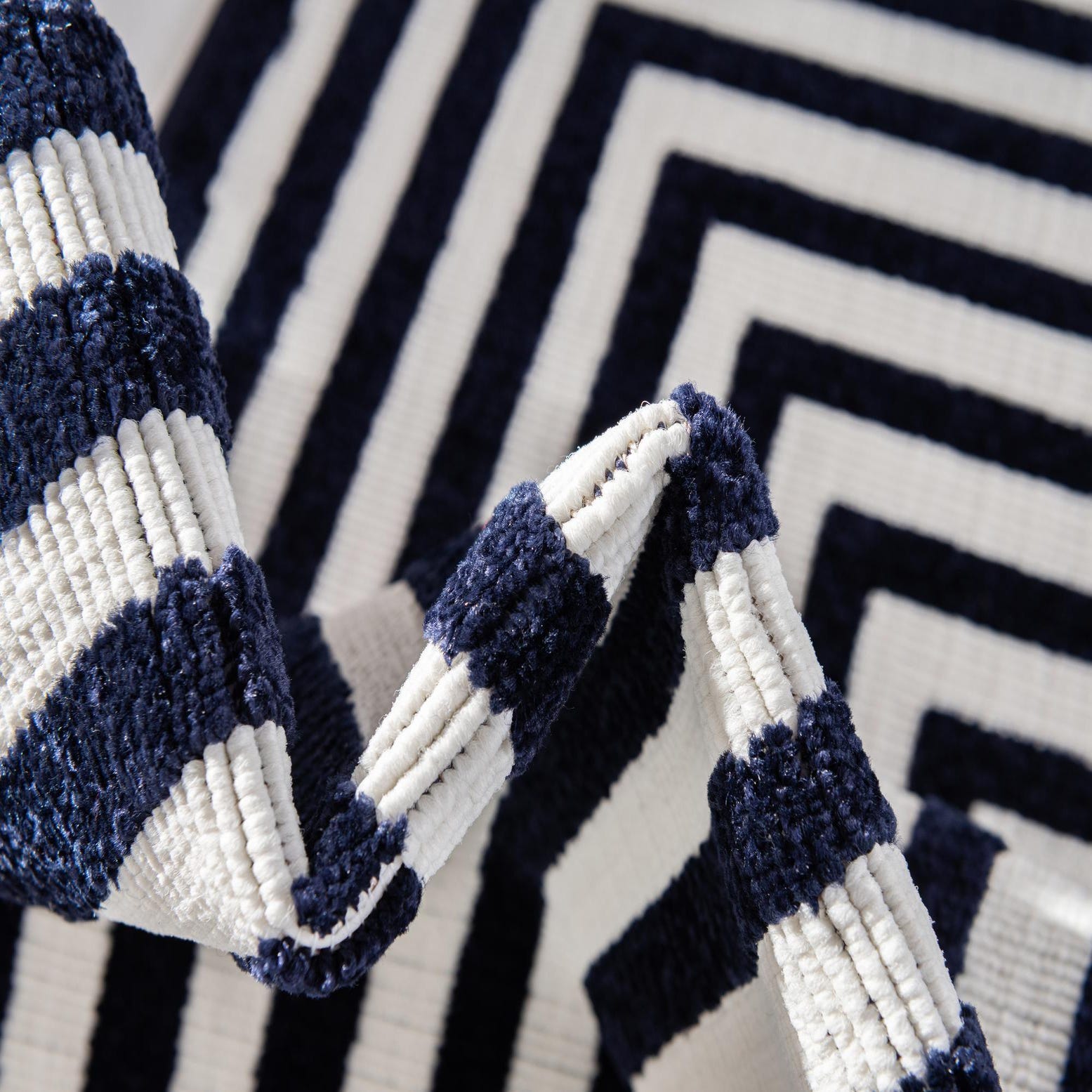 Primary color is Navy Blue. Colors in this rug include: Navy Blue, Ivory.