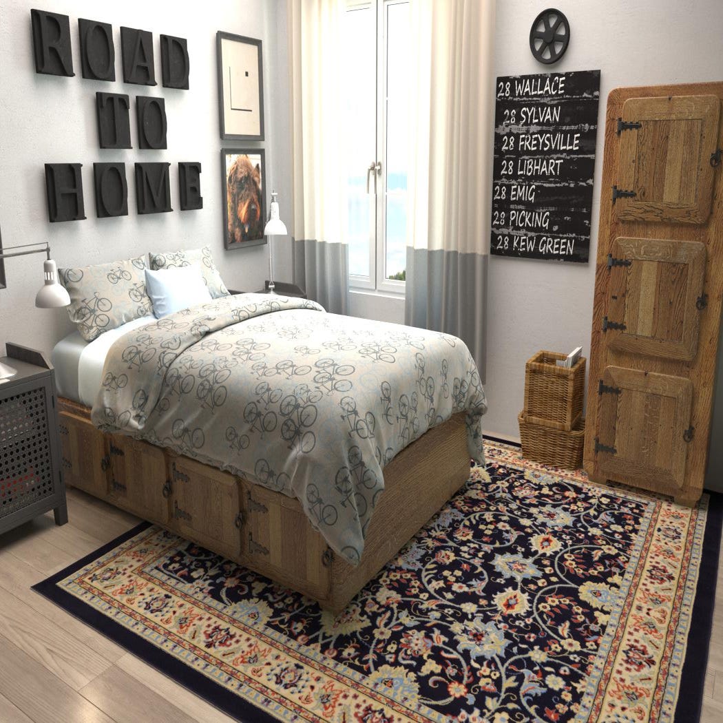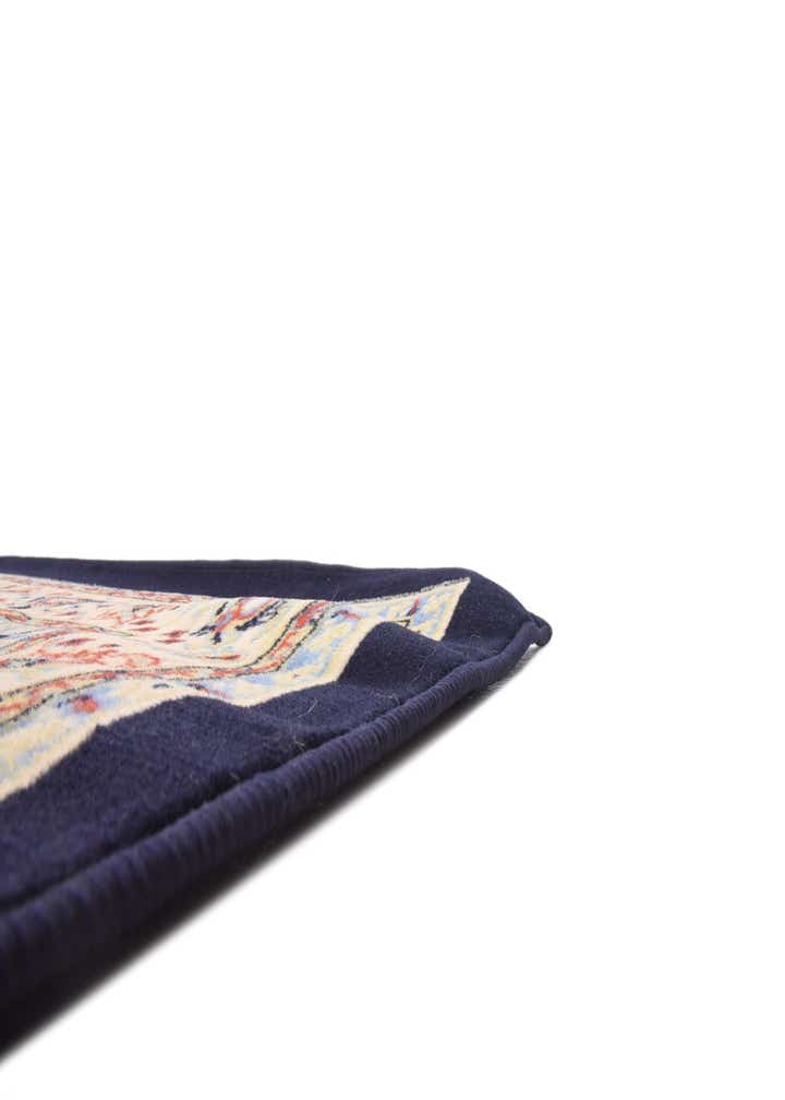 Primary color is Navy Blue. Colors in this rug include: Navy Blue, Cream, Light Blue, Terracotta.