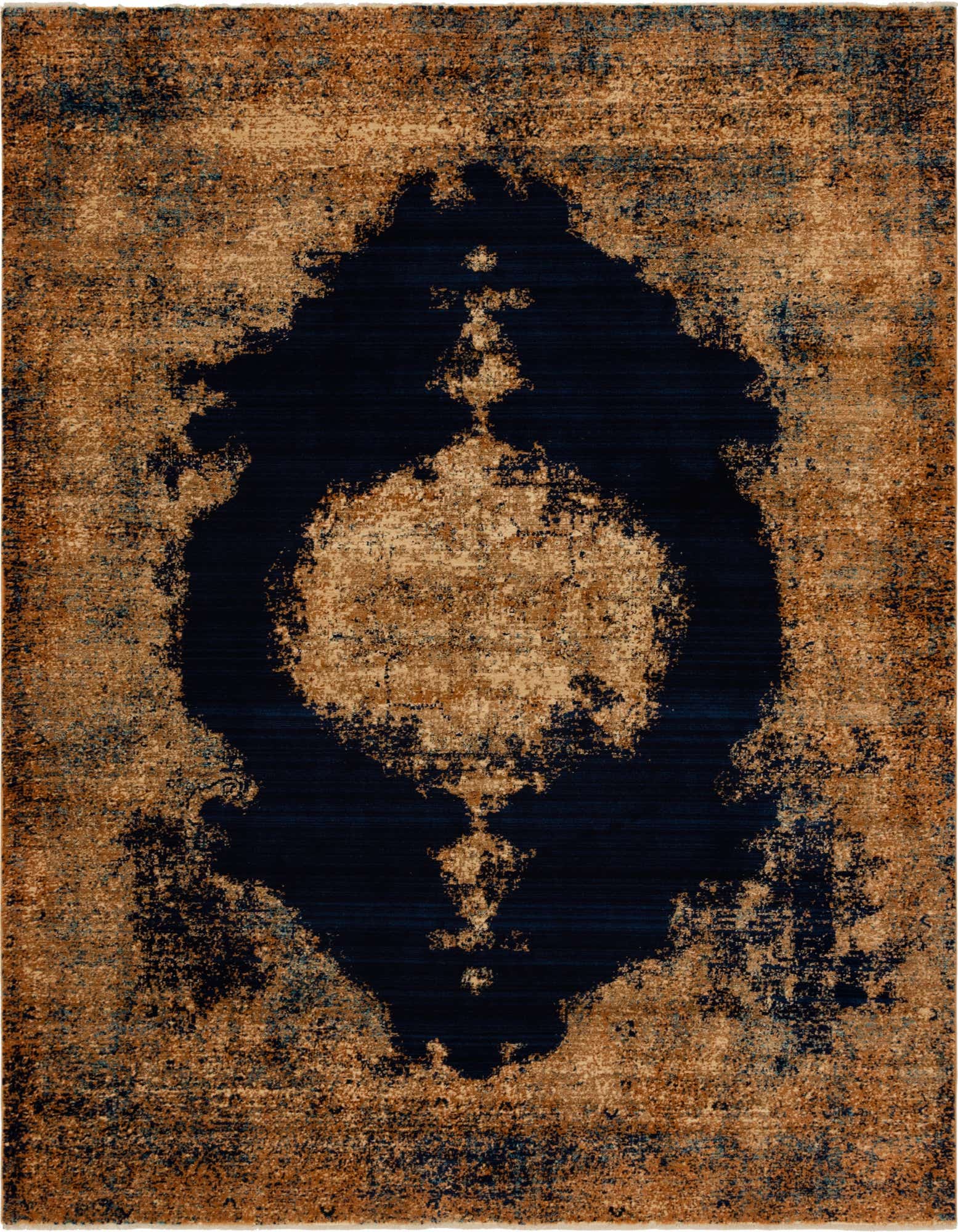 Primary color is Navy Blue. Colors in this rug include: Navy Blue, Blue, Cream, Ivory, Orange.