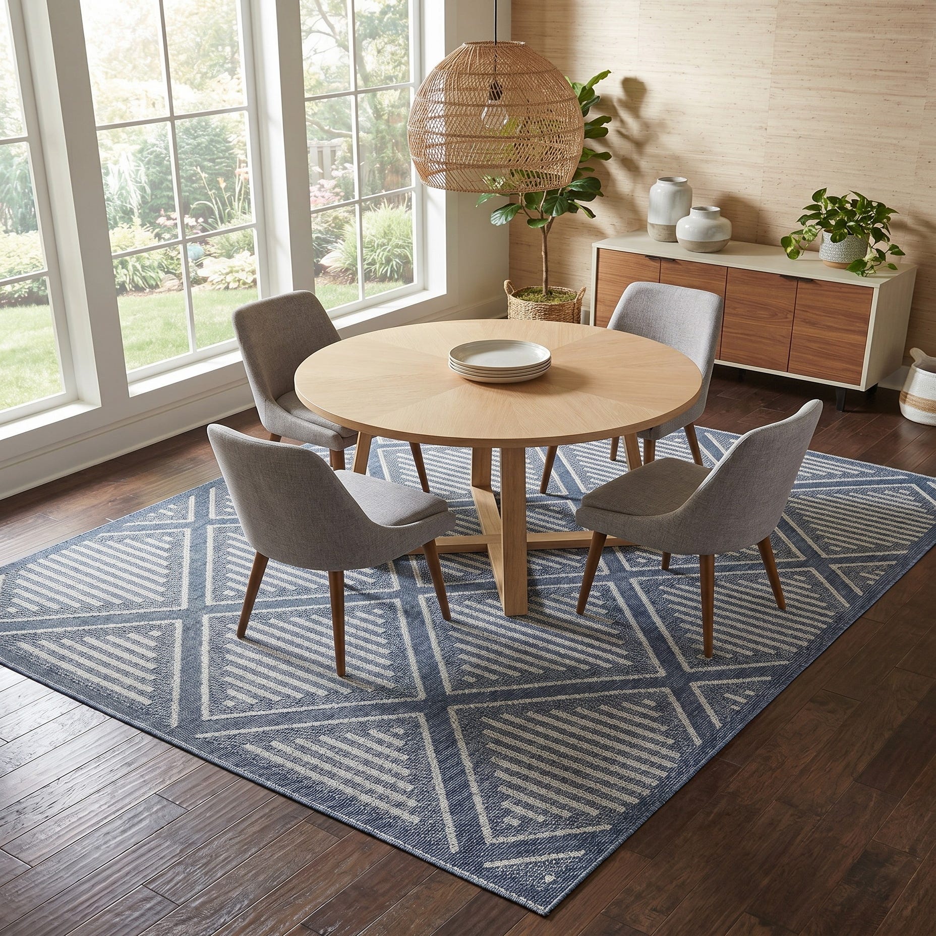 We love the pattern color and look of the rug. Unfortunately we bought it to put under a dining table. Do the the varying heights of the pattern it is difficult to slide the chairs in and out while a person is sitting on it. Would be more appropriate in a space with mostly stationary furniture.