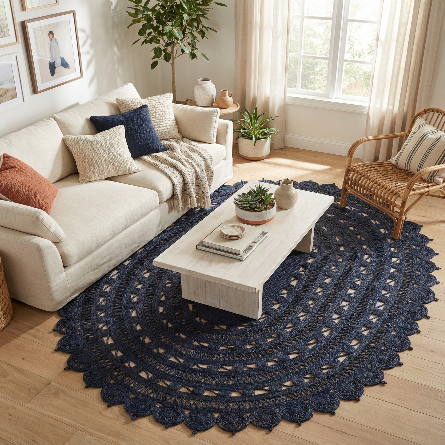 7' 10 x 10' Hand Braided Jute Oval Rug