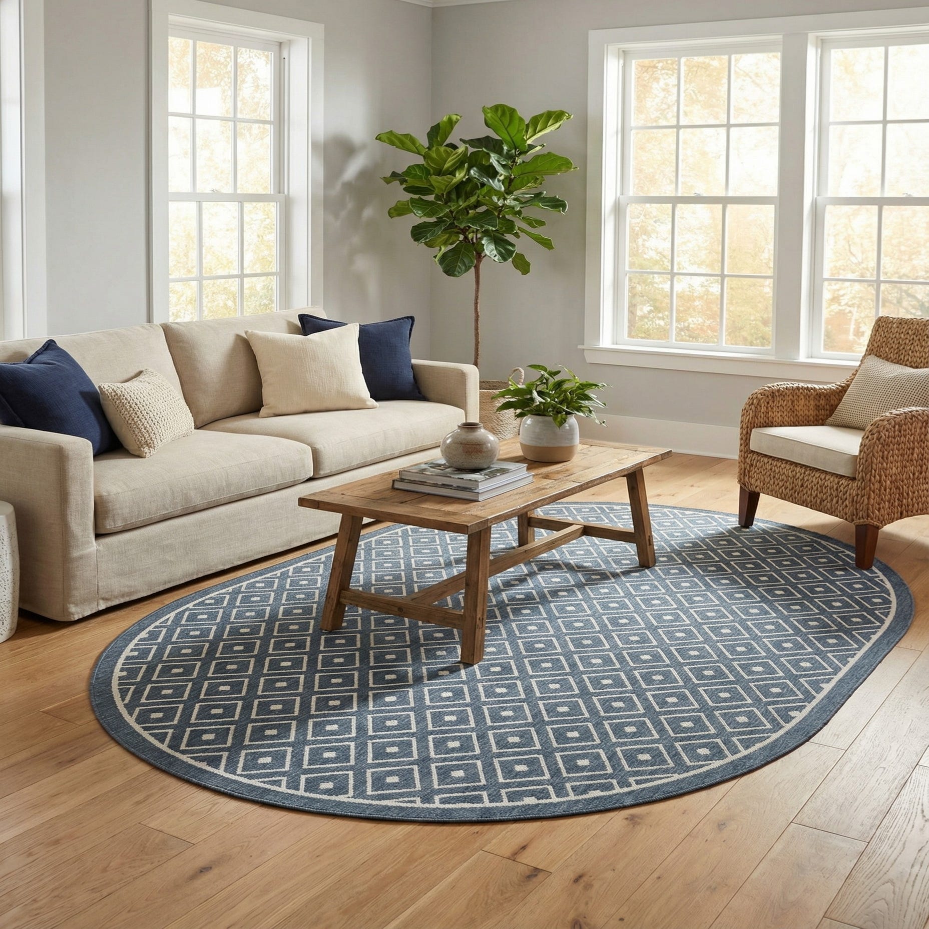 7' 10 x 10' Washable Trellis Indoor / Outdoor Oval Rug