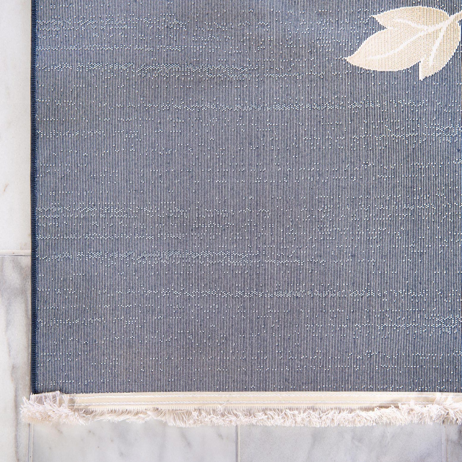 Primary color is Navy Blue. Colors in this rug include: Navy Blue, Cream, Green, Olive, Peach, Burgundy, Ivory.