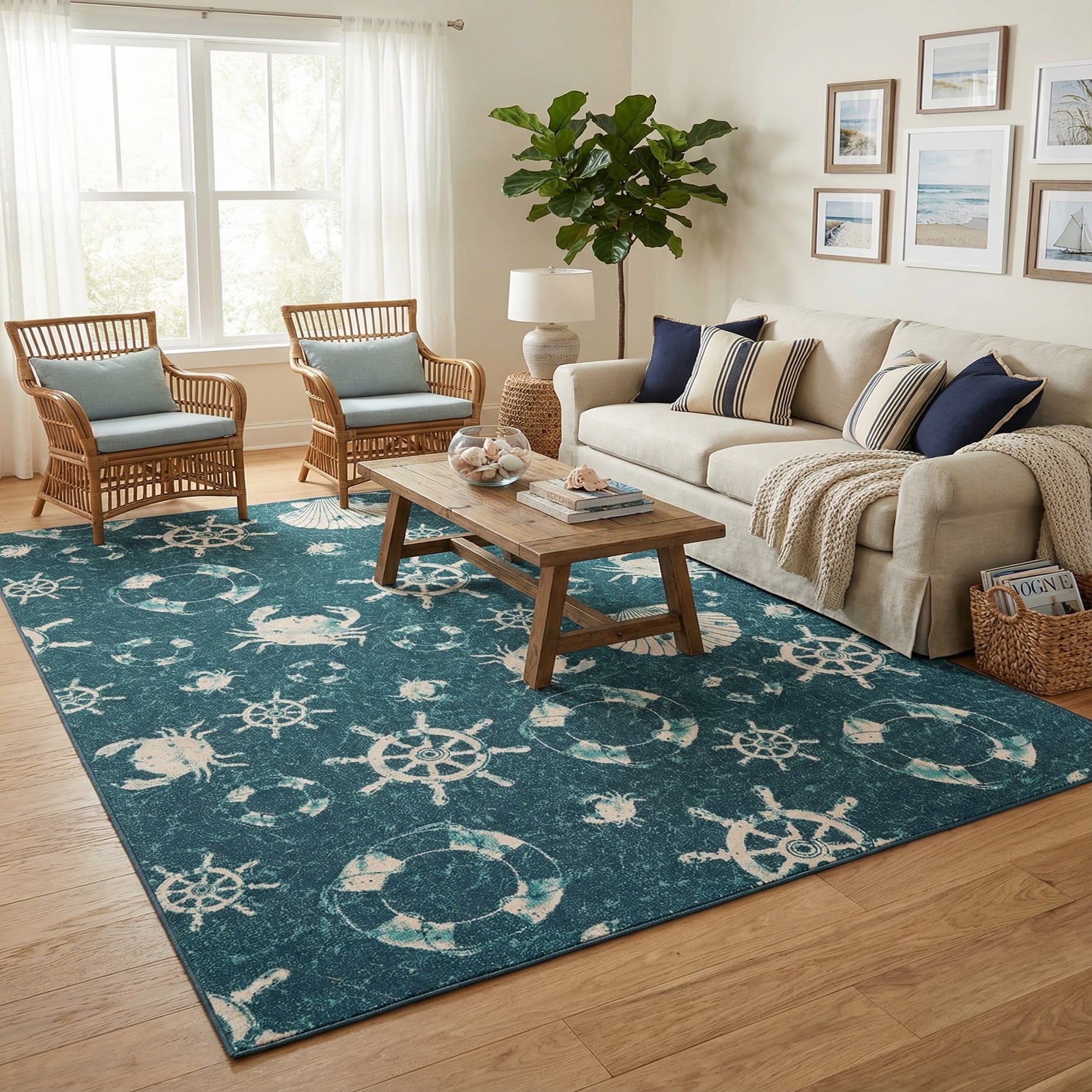 9' x 12' Washable Coastal Indoor / Outdoor Rug