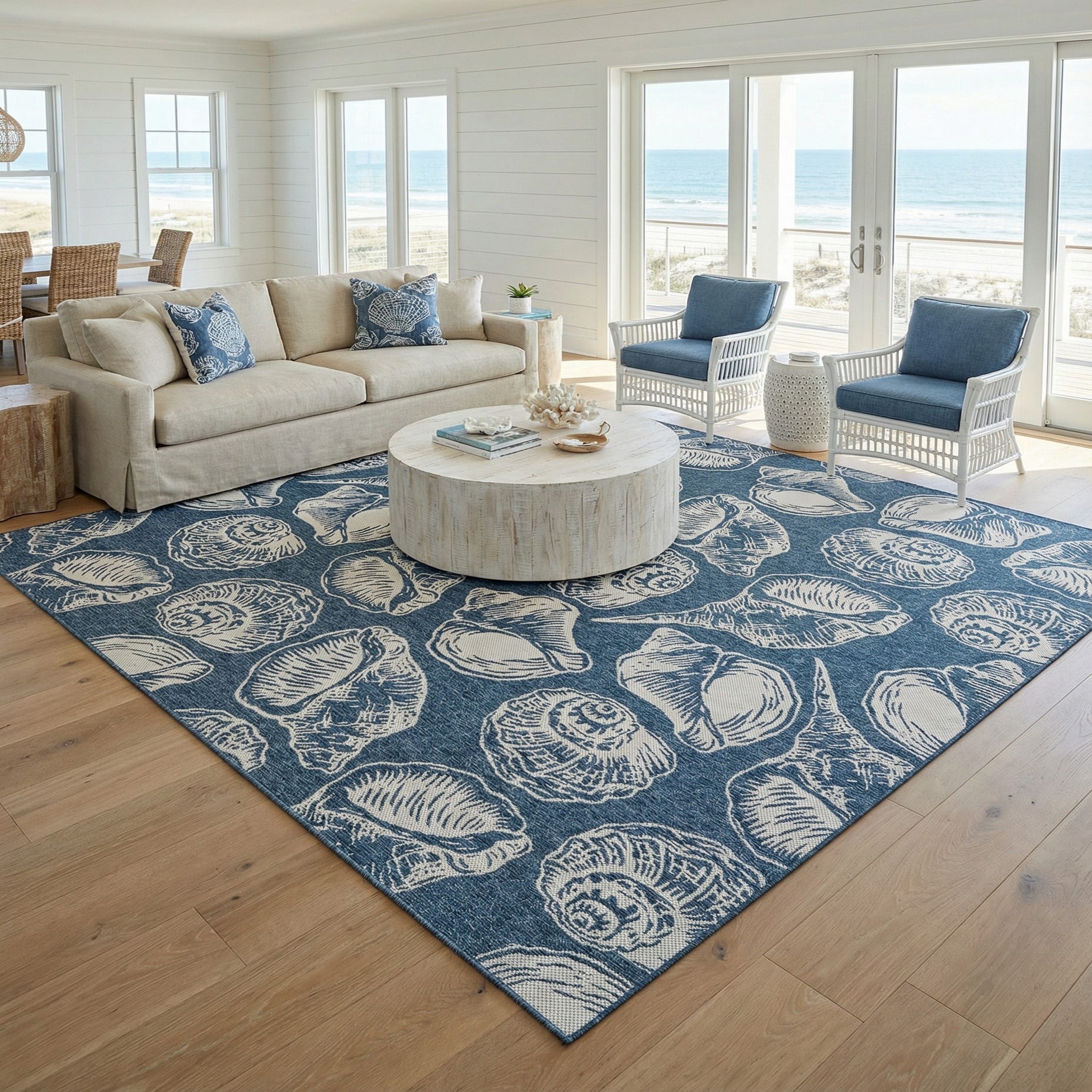 12' x 12' Washable Coastal Indoor / Outdoor Square Rug