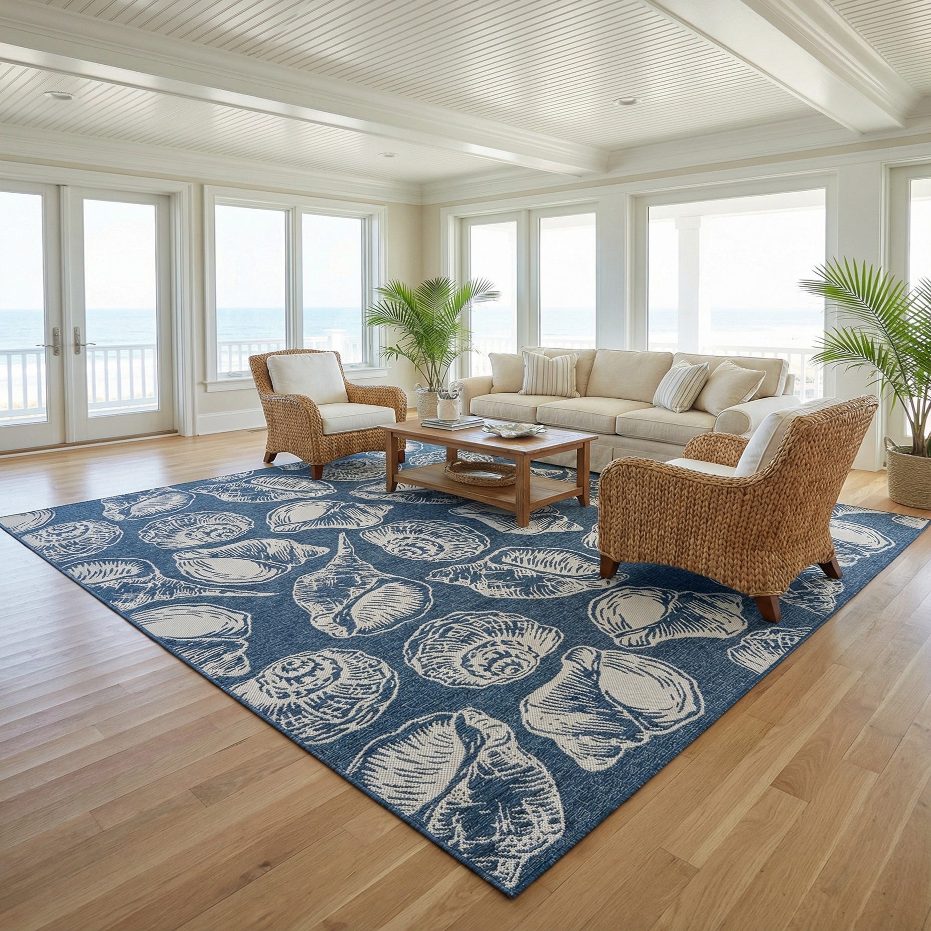 12' x 12' Washable Coastal Indoor / Outdoor Square Rug