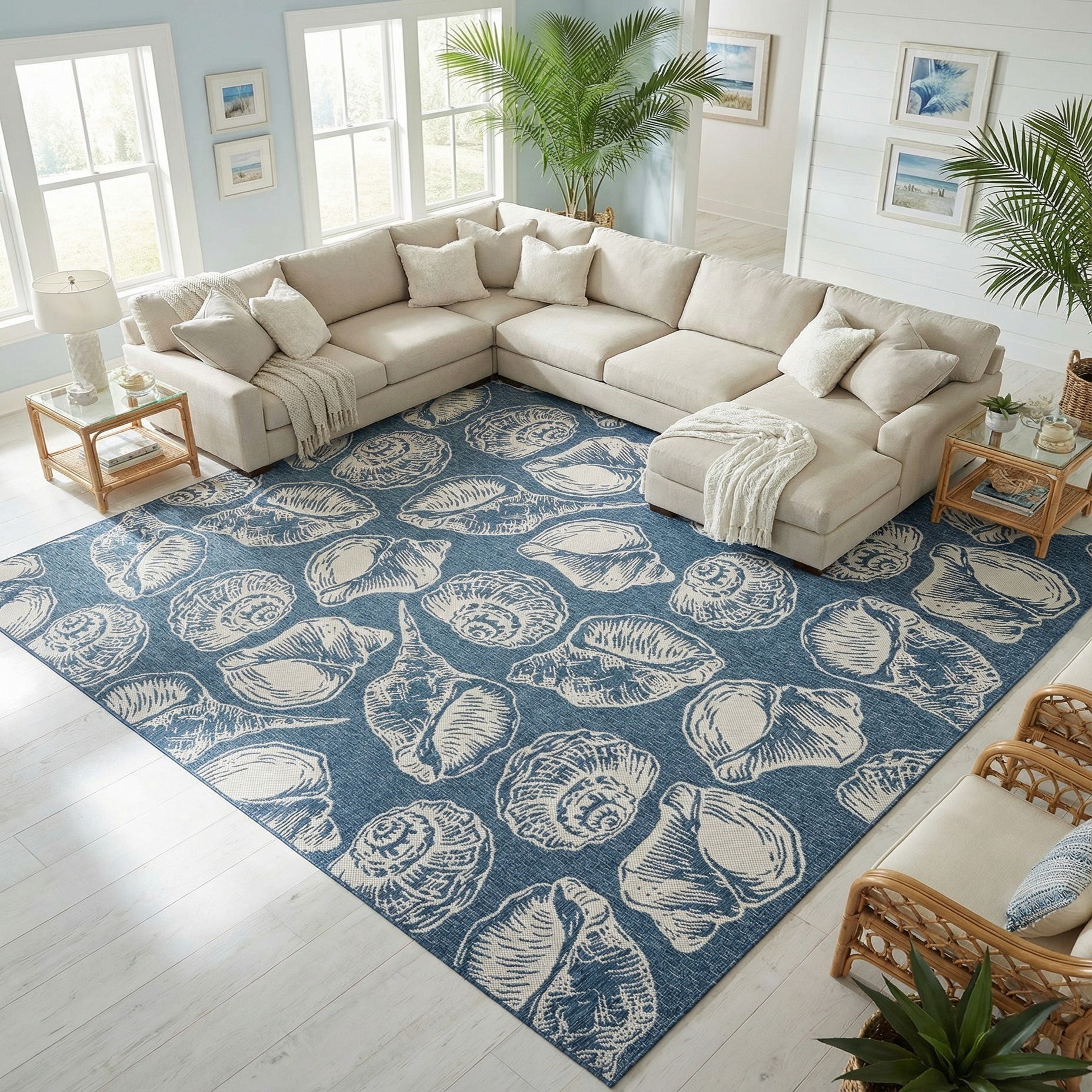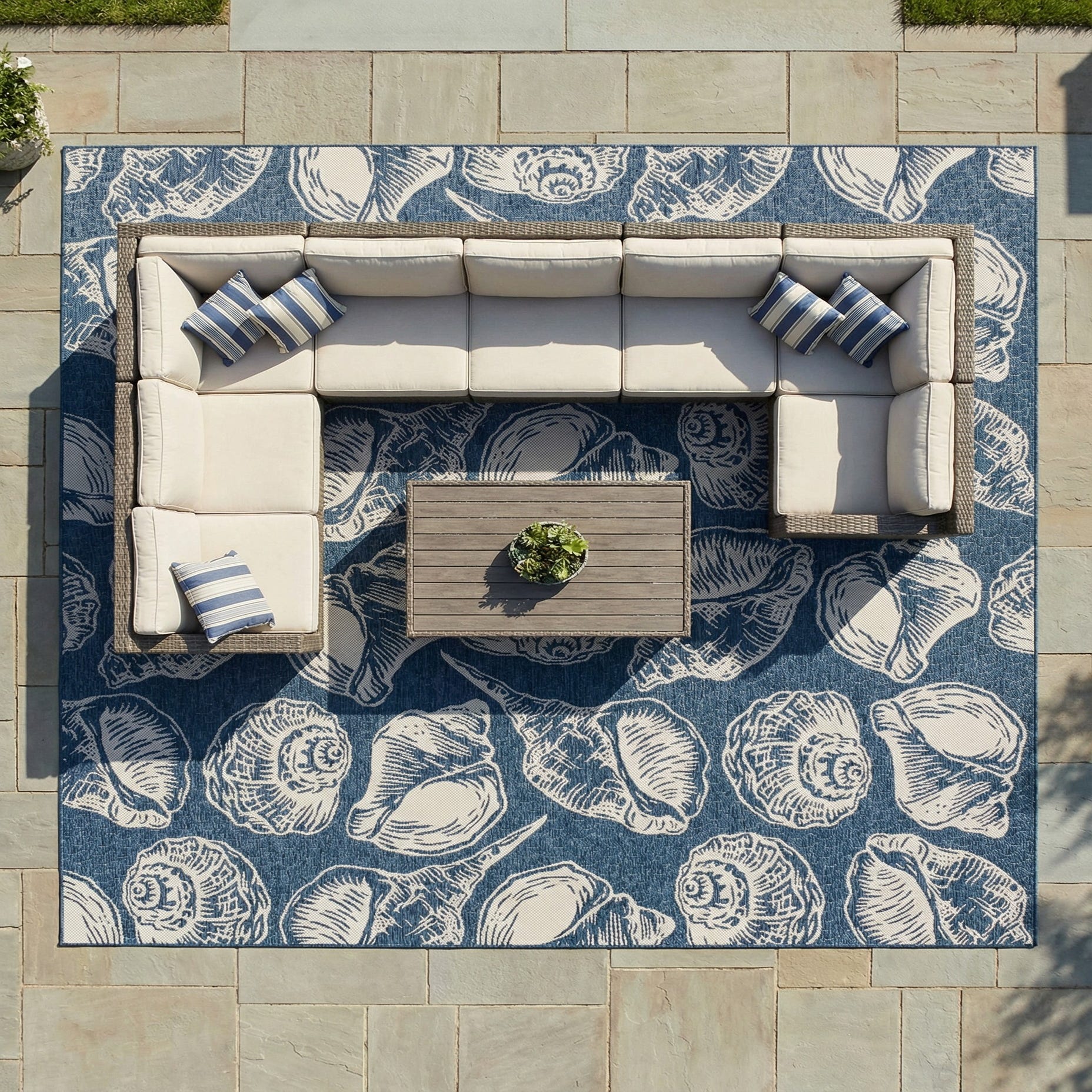 13' x 13' Washable Coastal Indoor / Outdoor Square Rug