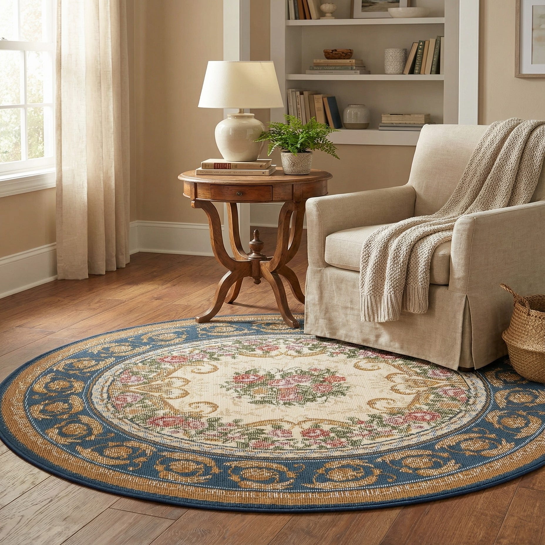 Primary image 3' x 3'  Washable Traditional Indoor / Outdoor Round Rug