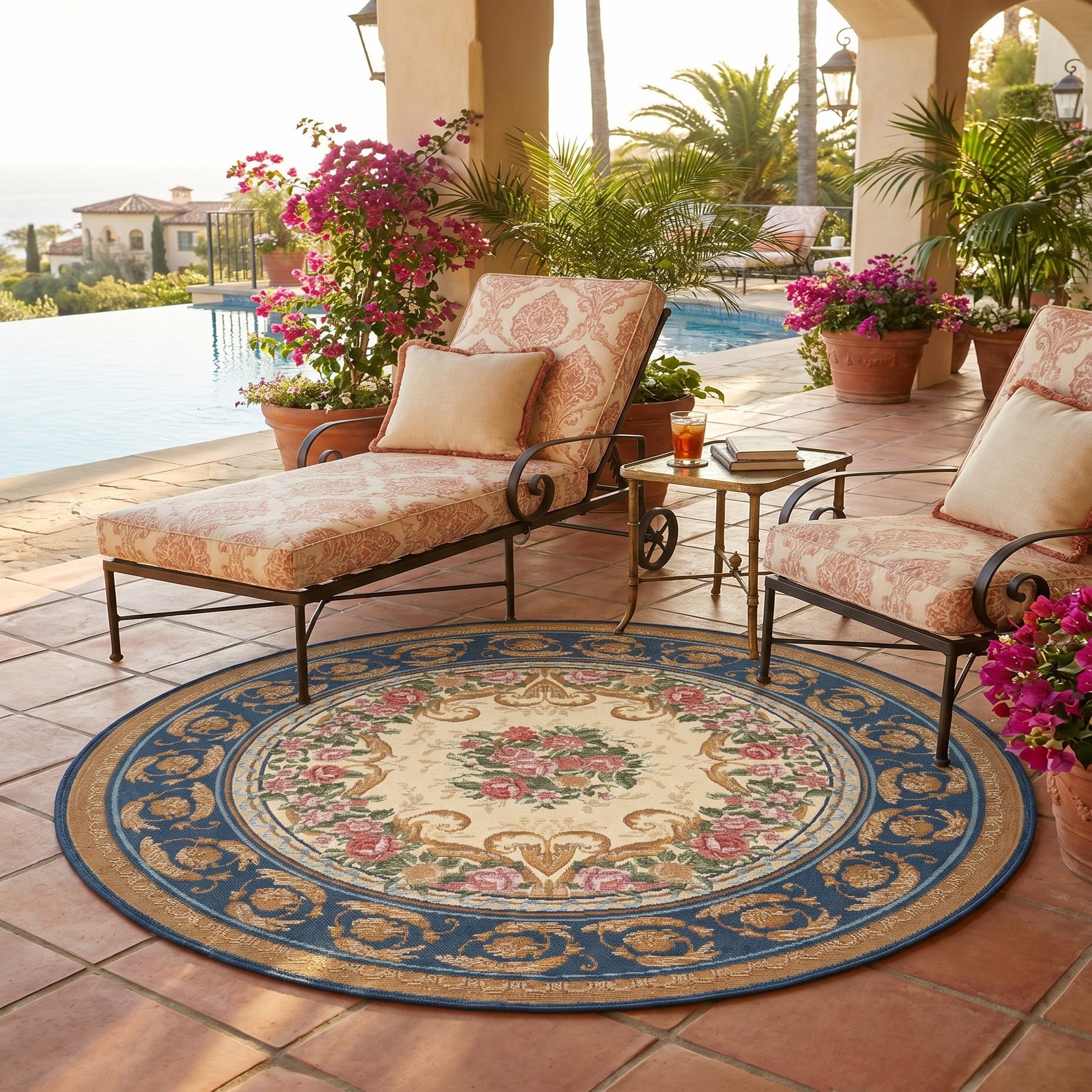 4' x 4' Easy-Clean Traditional Indoor / Outdoor Round Rug